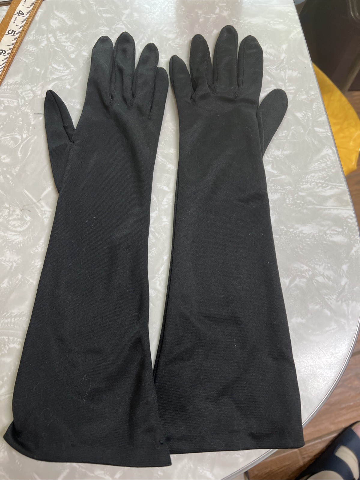 Ladies Vintage Black 15 Gloves Nylon Blend Above Wrist