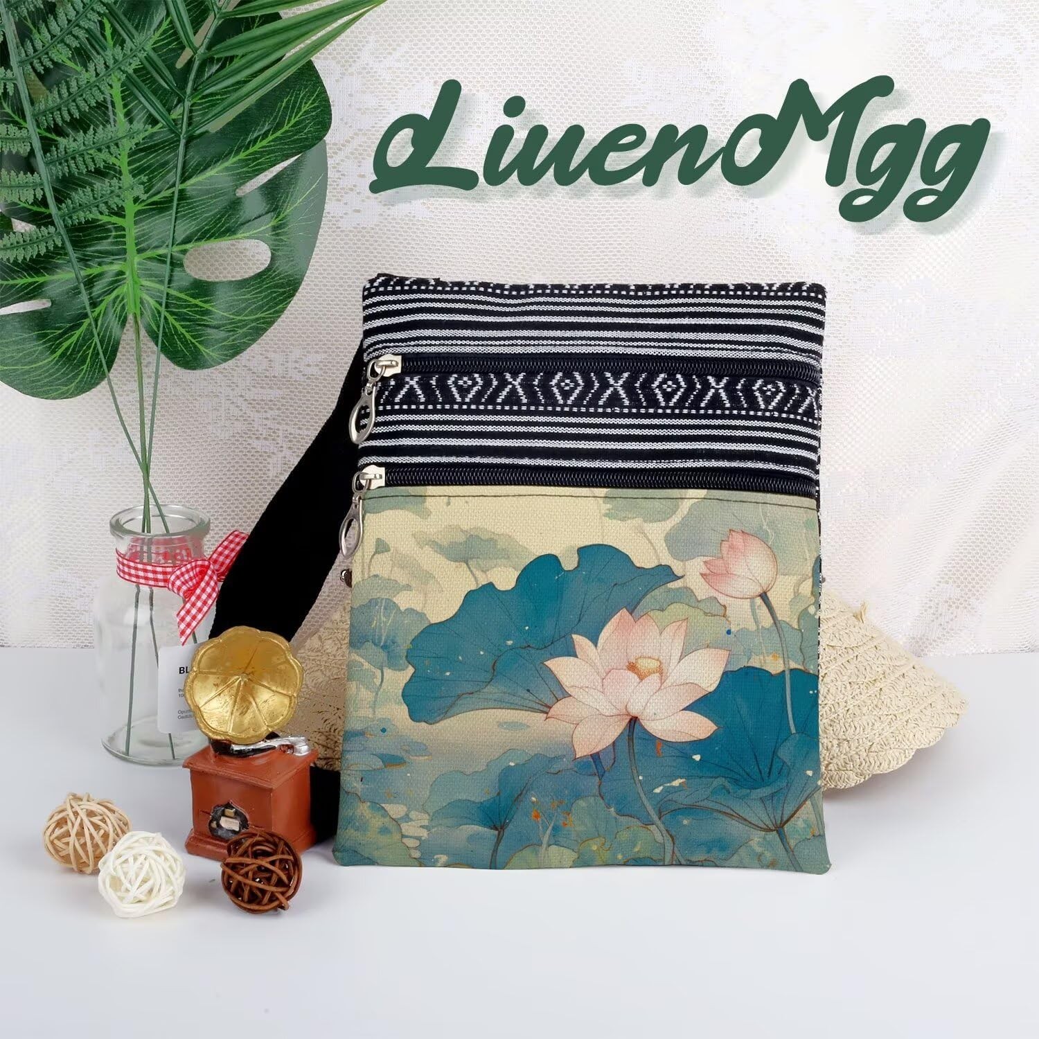 Lotus Flower Messenger Bag Small Ethnic Pattern Printed Adjustable Strap Cros...