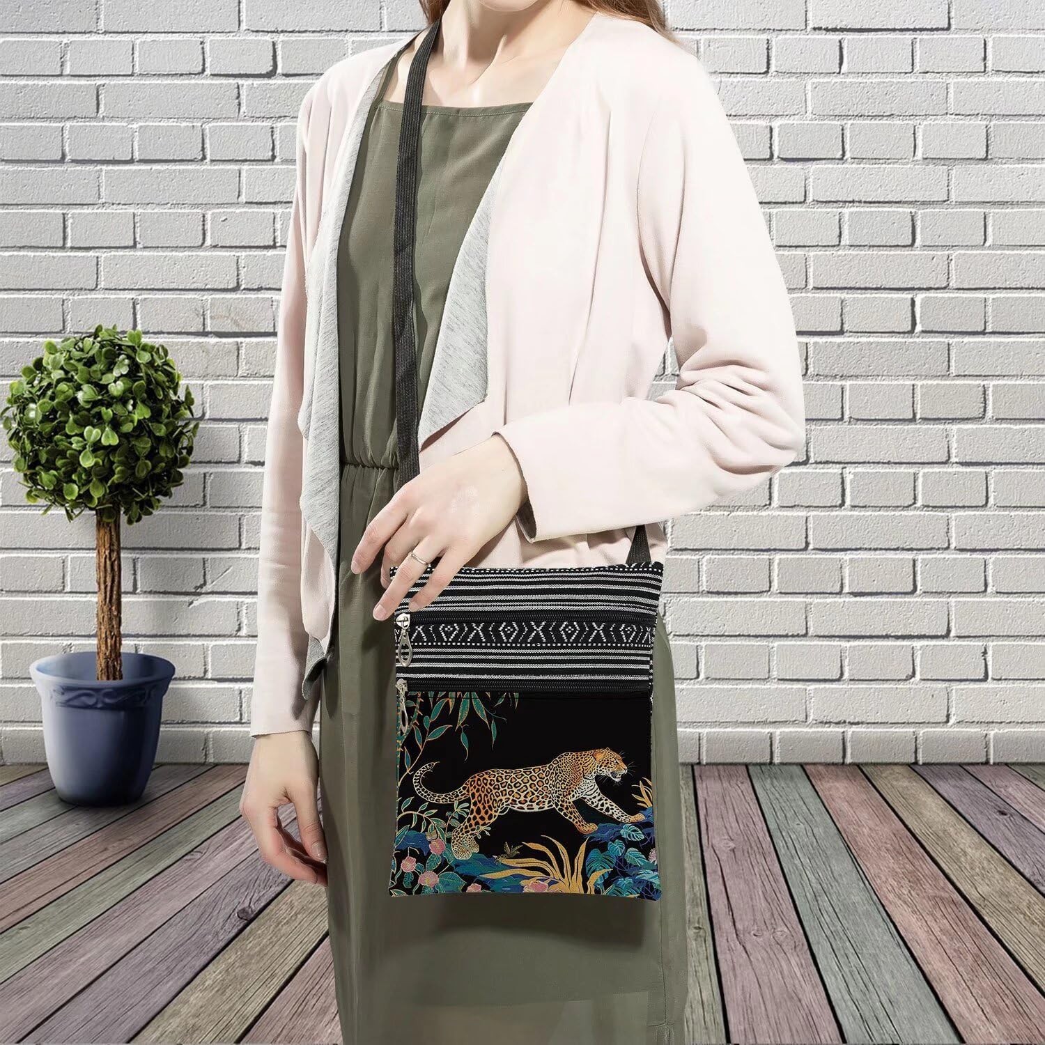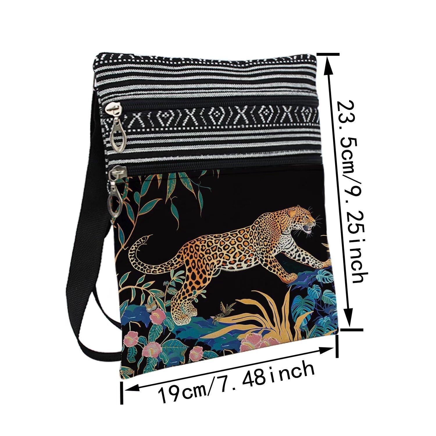 Floral Cheetah Messenger Bag Small Ethnic Pattern Printed Adjustable Strap Cr...