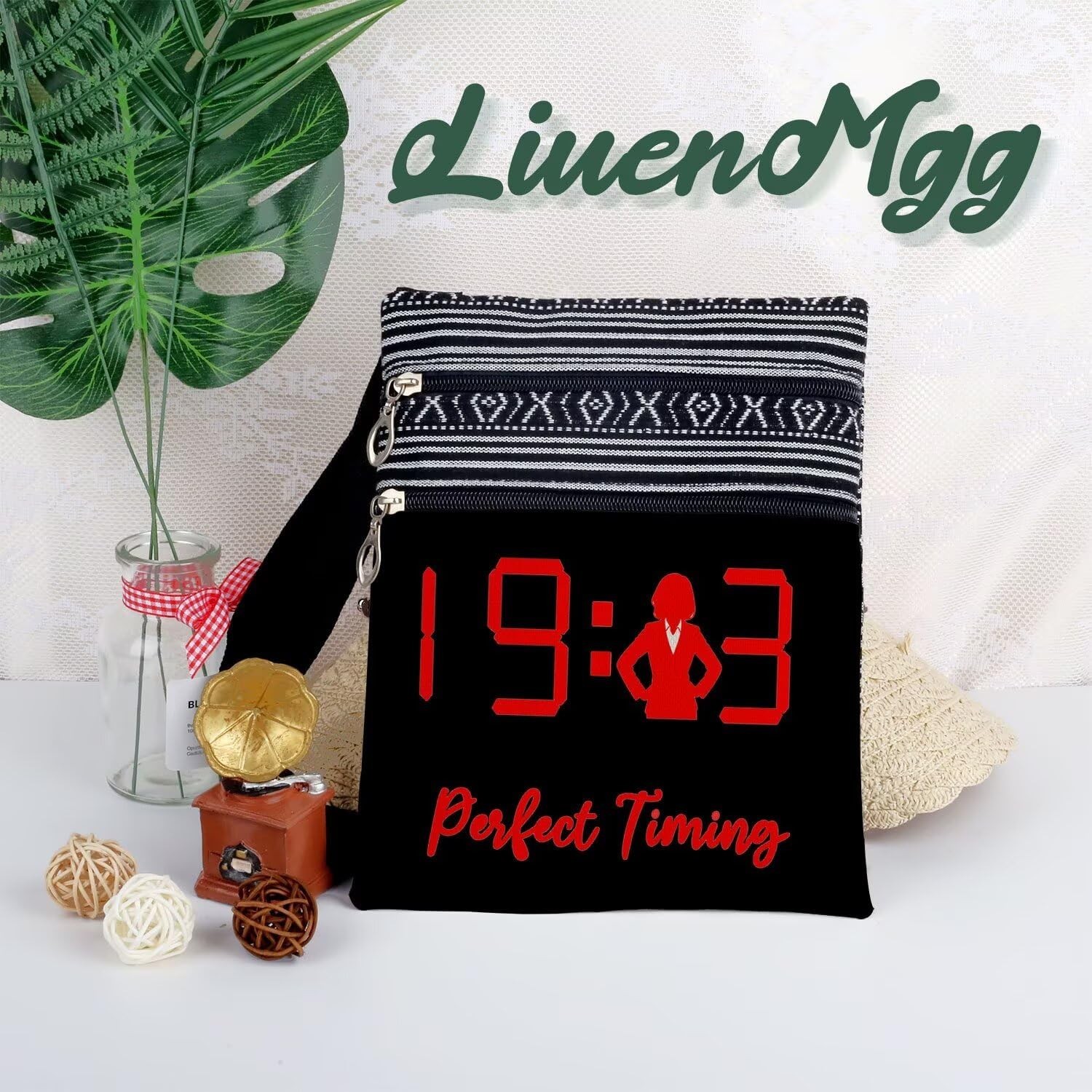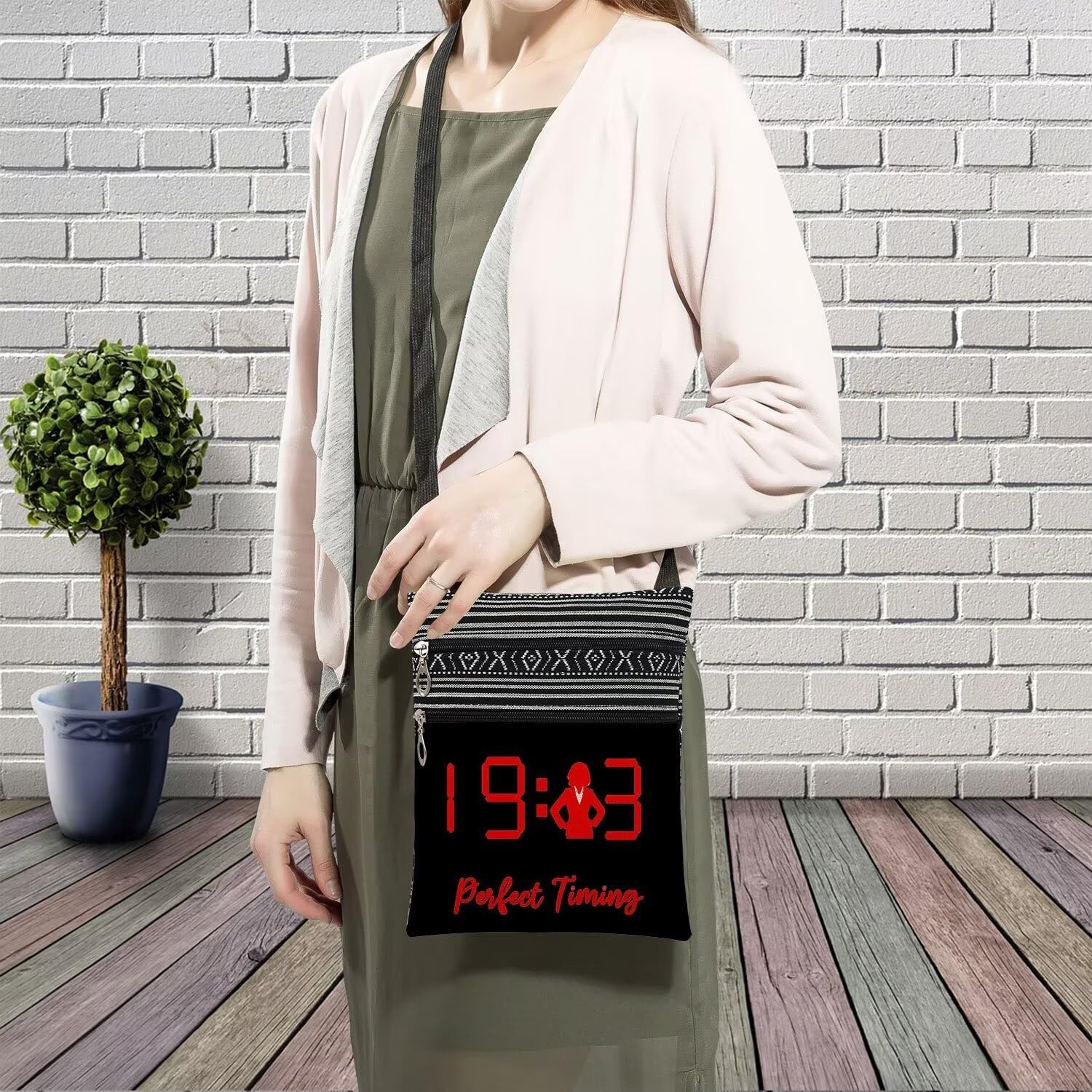 Black Perfect Timing 1913 Messenger Bag Small Ethnic Pattern Adjustable Strap...