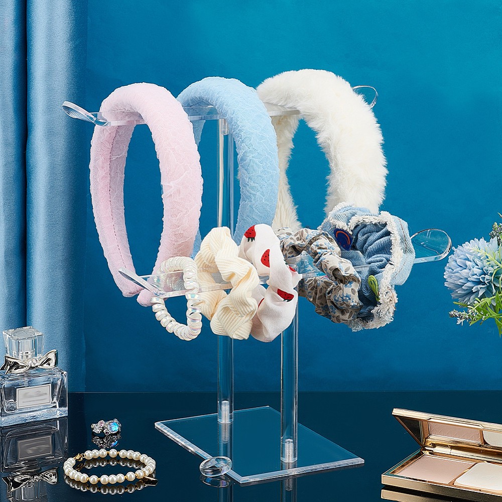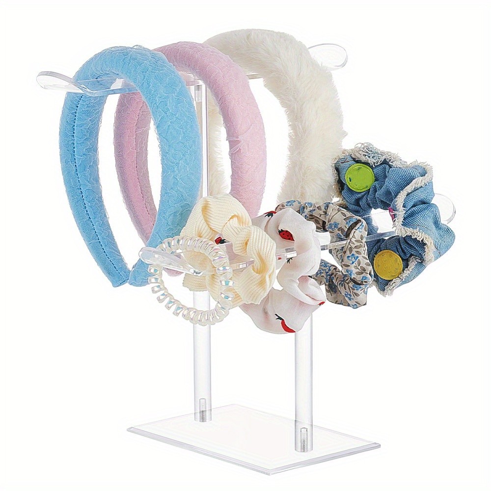 1set 2 Tier Acrylic Headband Holder T Shape Clear Hair Ties Holder Organize