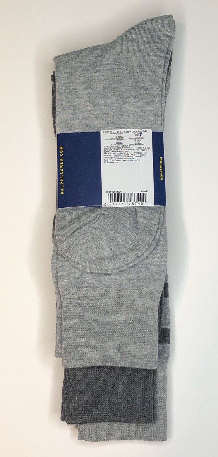 Polo Ralph Lauren Men's 3 Pairs Stripe Solid Dress Socks Assorted Grey NEW 23