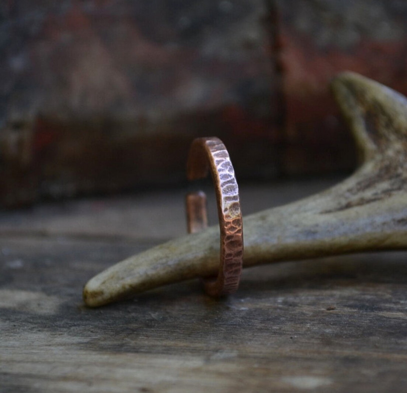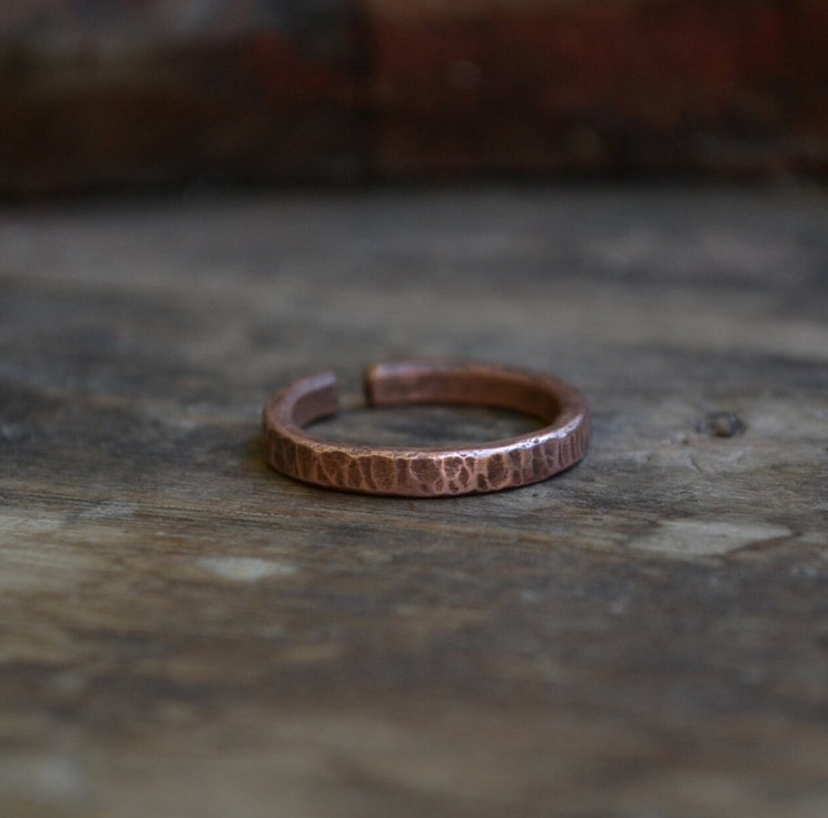 Handcrafted Hammered Copper Band Ring Rustic Textured Solid Copper AF014