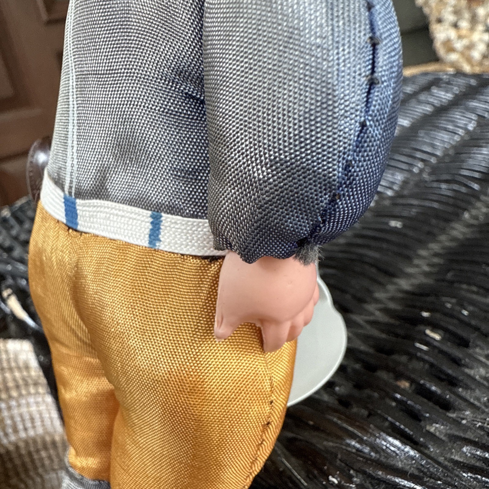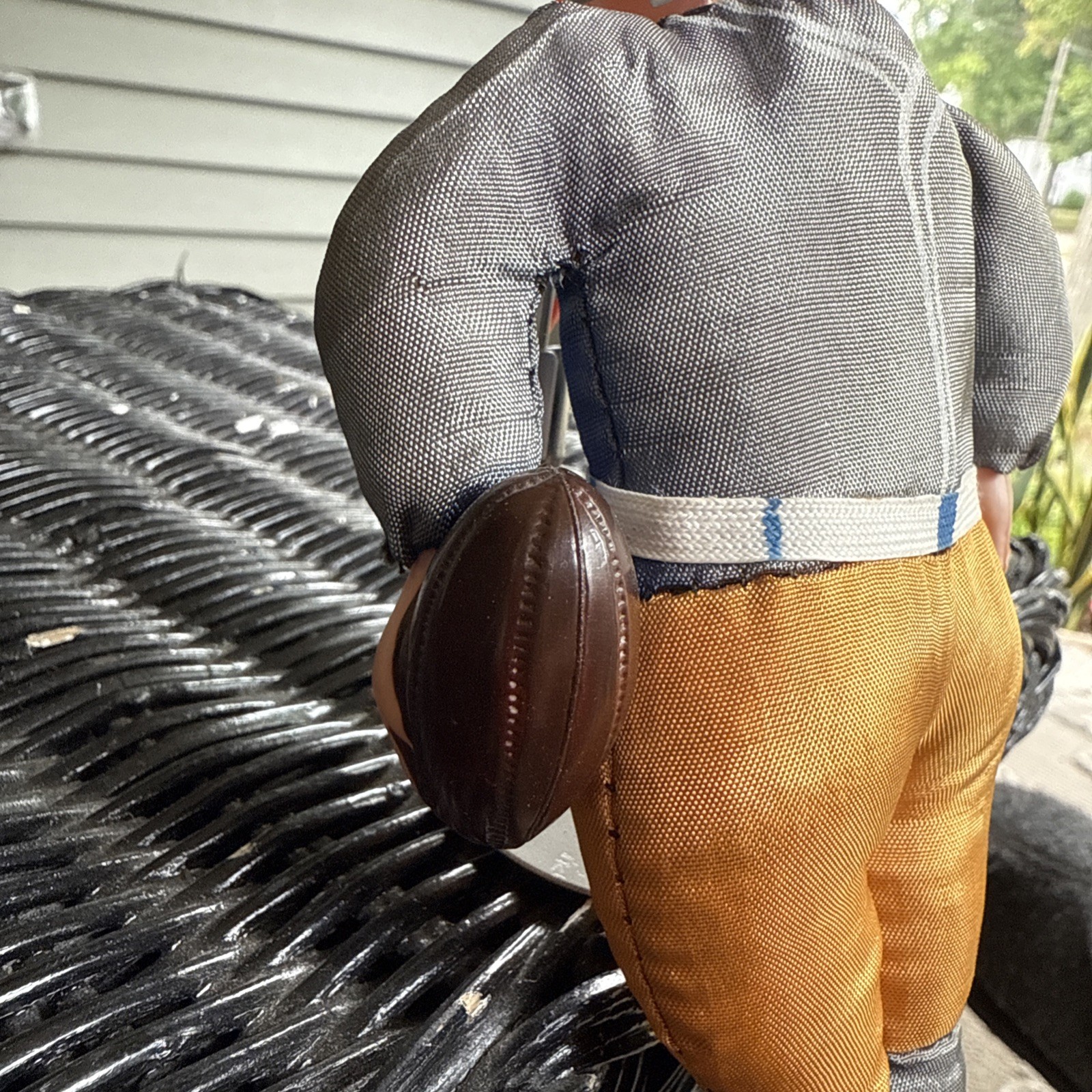 Vintage Football Player Doll w Straw Stuffed Body Celluloid Head Japan Approx 7