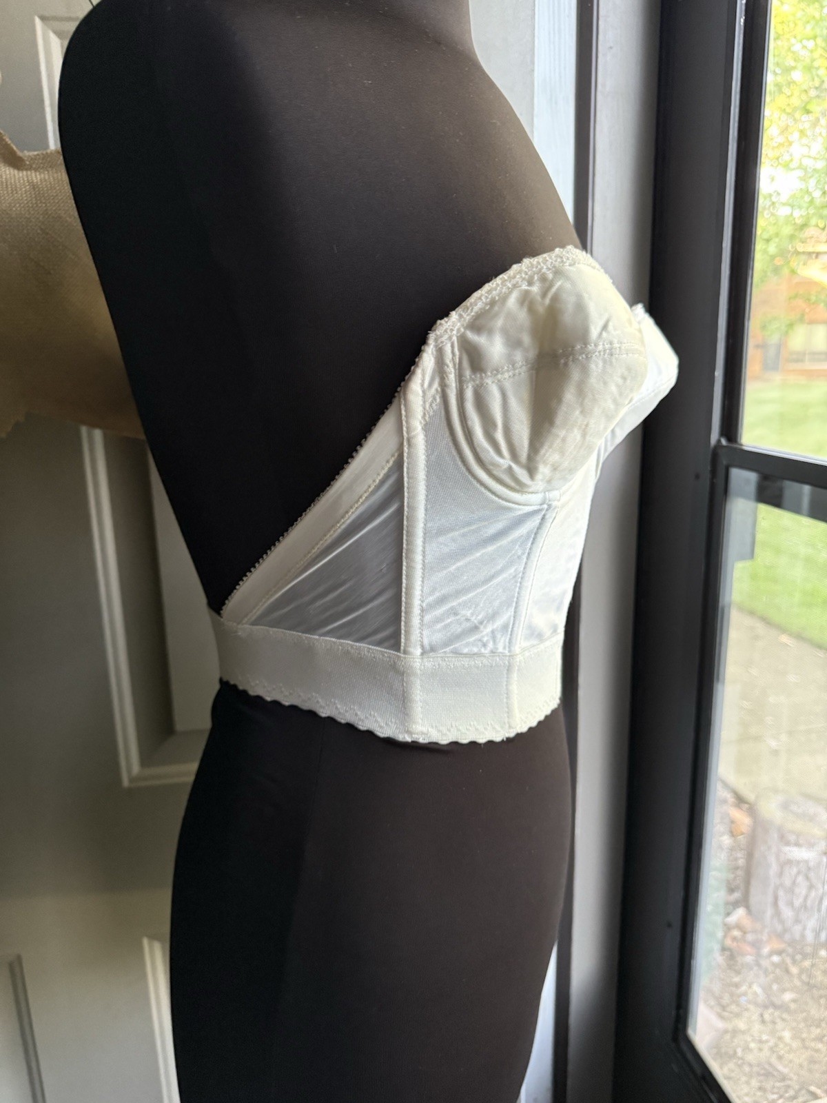 Vintage Jezebel white bridal bra corset bustier, size 34B
