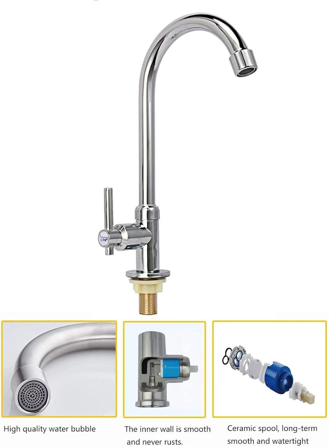 Cold Water Faucet Only, High Arc Single Handle One Hole Faucet for Kitchen Garde