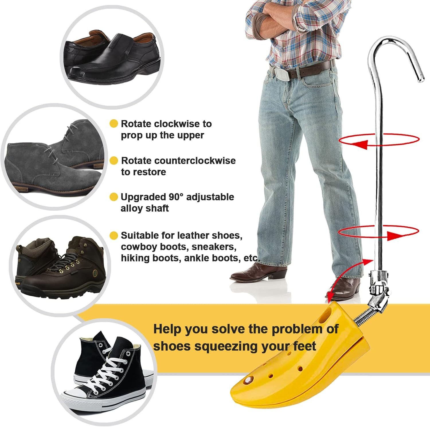 Boot Stretchers for Cowboy Boots, Shoe Stretcher Men for Wide Feet, Adjustable S