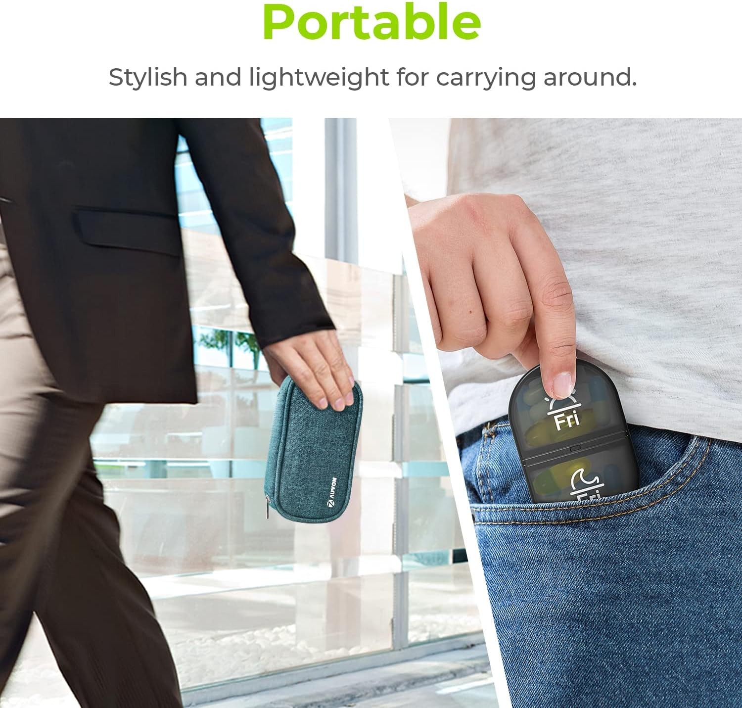 AUVON Canvas Bag Travel Pill Organizer 2 Times a Day, Large AM/PM Weekly Cyan