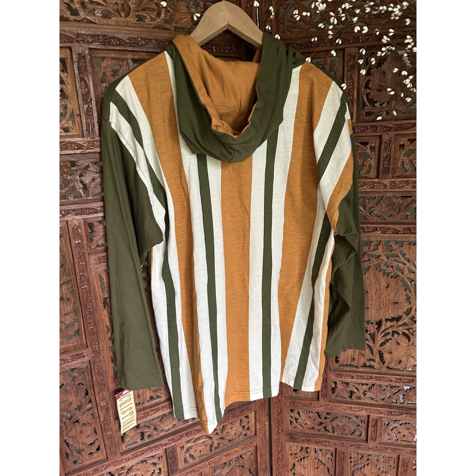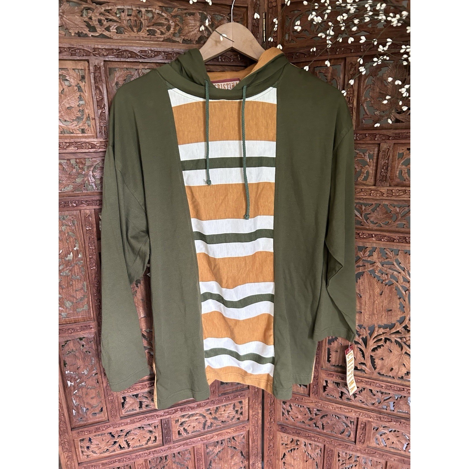 Vintage 80's Color Block Striped Hoodie Olive Green Mustard White Size L NWT