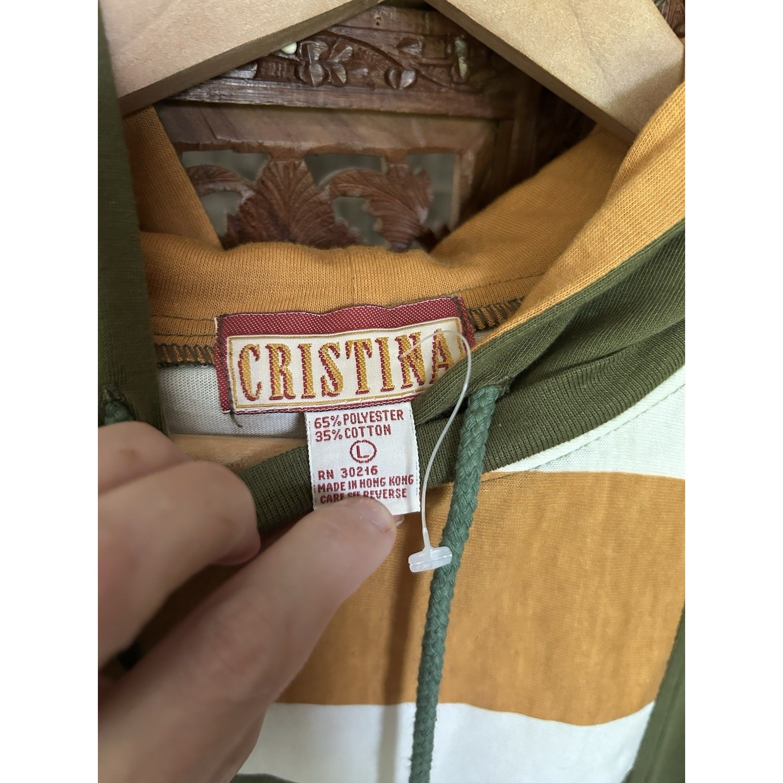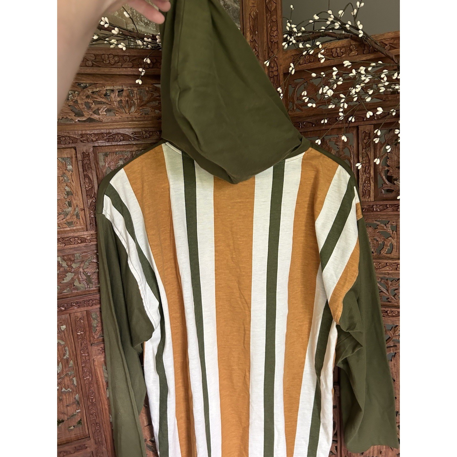 как выглядит Vintage 80s Color Block Striped Hoodie Olive Green Mustard White Size L NWT фото