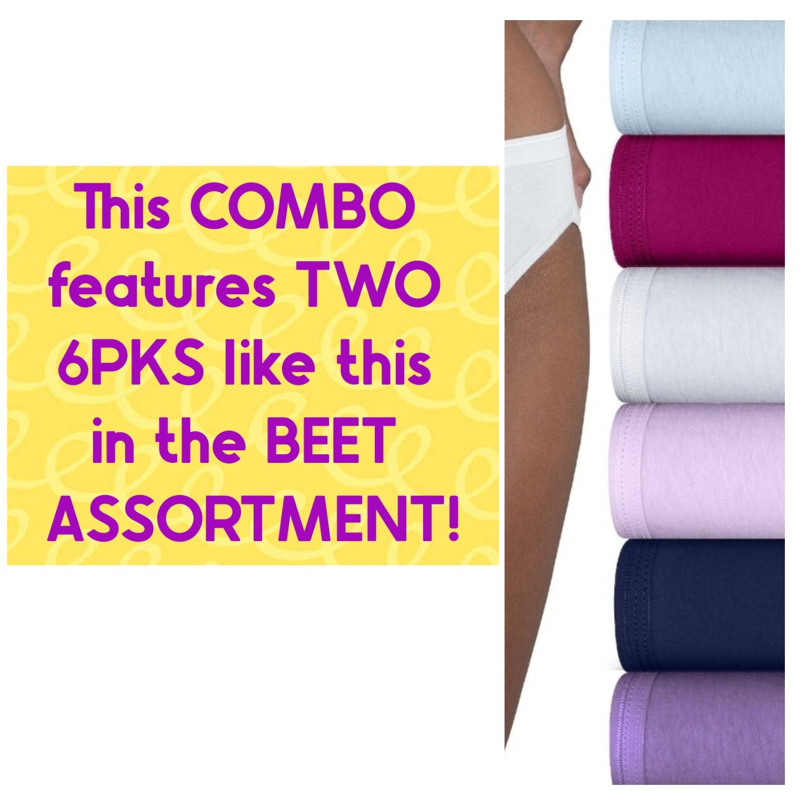 SZ 5 Fruit of the Loom SIGNATURE BIKINIS COMBO Two 6PKS Beet Asst 100 Cot Gift