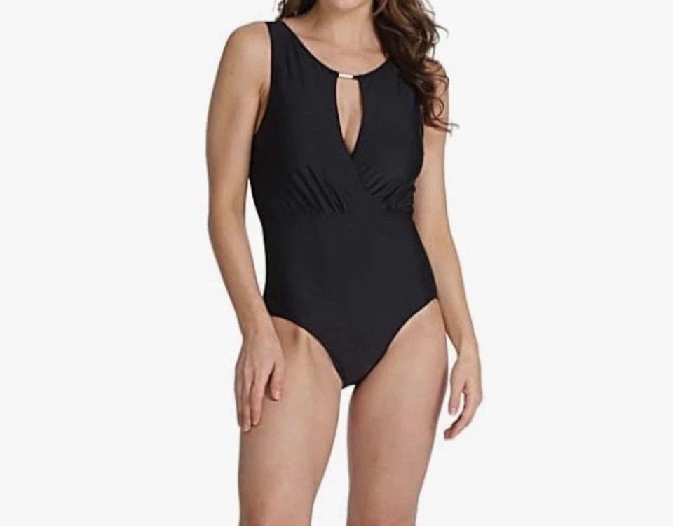 как выглядит Swimsuit Small One Piece Kensie Draped Keyhole Black Plunge Swim New With Tags фото