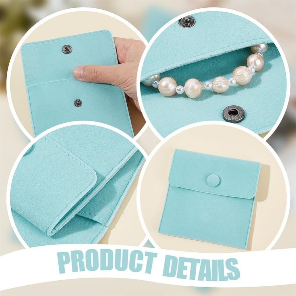 10pcs Square Velvet Jewelry Bags with Snap Fastener Turquoise 10x10x1cm