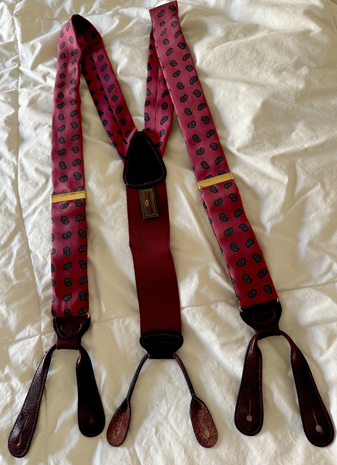 Trafalgar Ros Paisley, Printed Silk Foulard Vintage Silk And Leather Braces