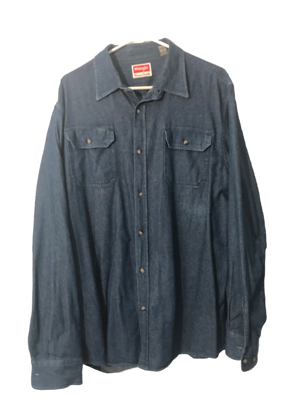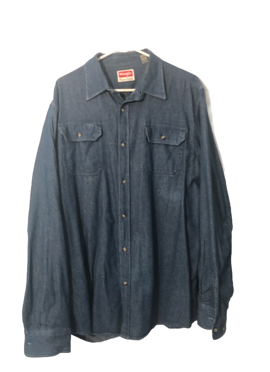 как выглядит Wrangler Denim Shirt-Men s Sz. Large, Long Sleeve, Button Down, Dark Wash-Blue. фото