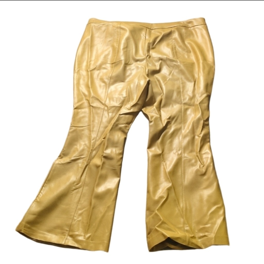 как выглядит Eloquii Tan/Camel Color Faux Leather High Rise Flare Pants Size 24 фото