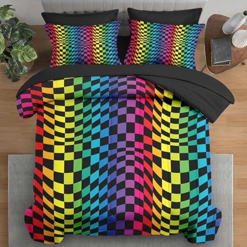Comforter Set Size, Rainbow Geometric Colorful 7 Pcs Full Abstract Stripes