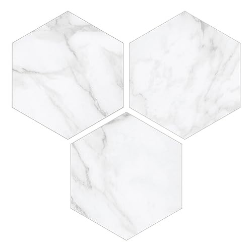 -Sheet Hexagon Peel and Stick Backsplash, 6 x 7 White 45 Calacatta White