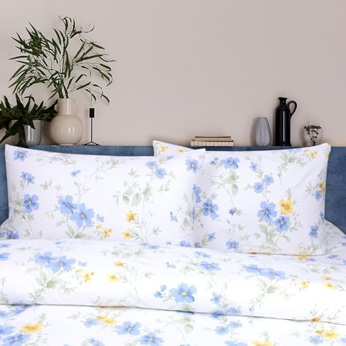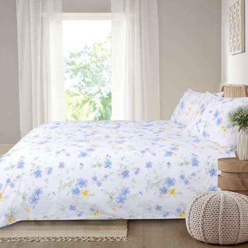 Blue Floral Cotton Duvet Cover Set White Yellow Flower King Blue yellow