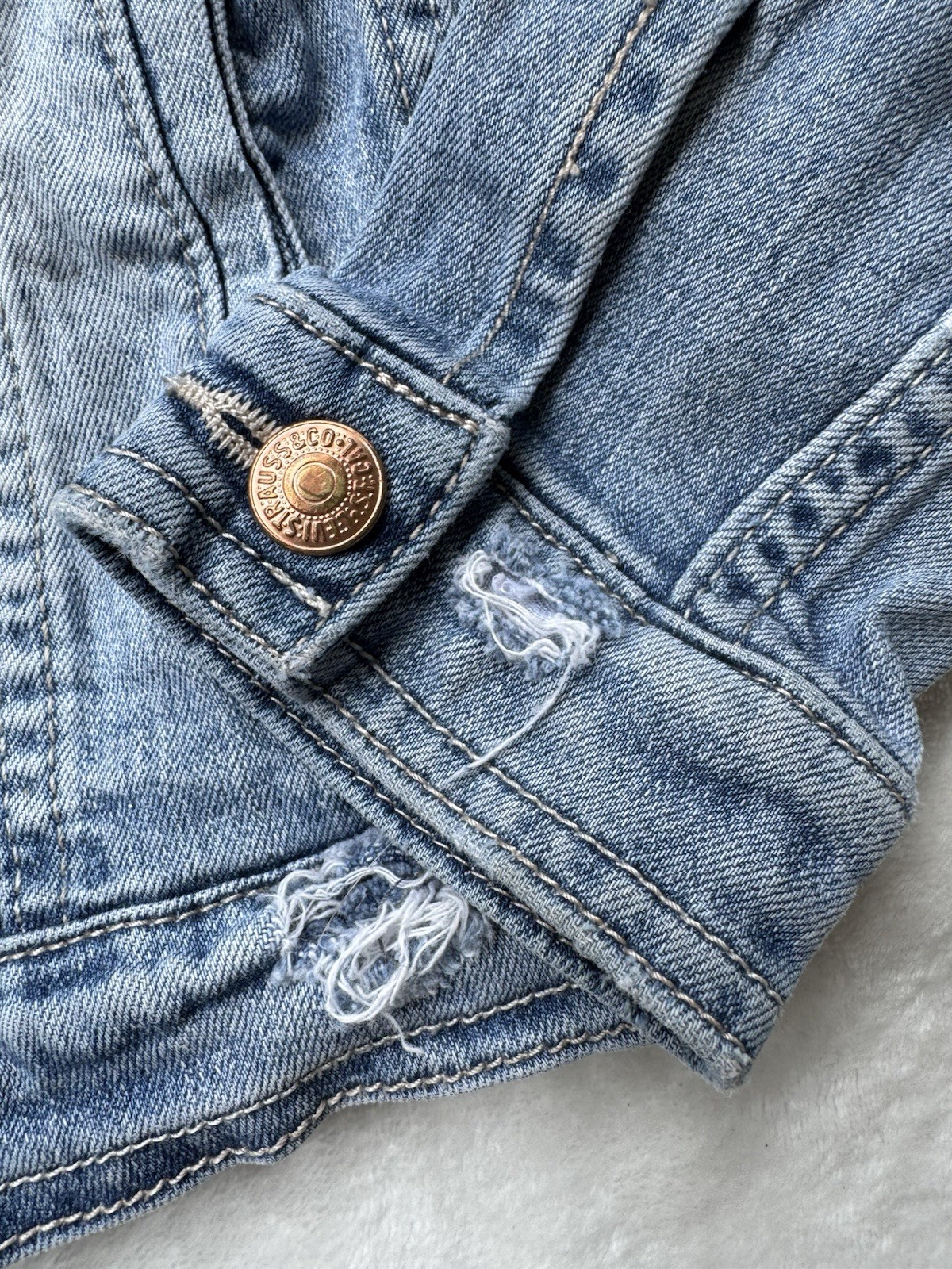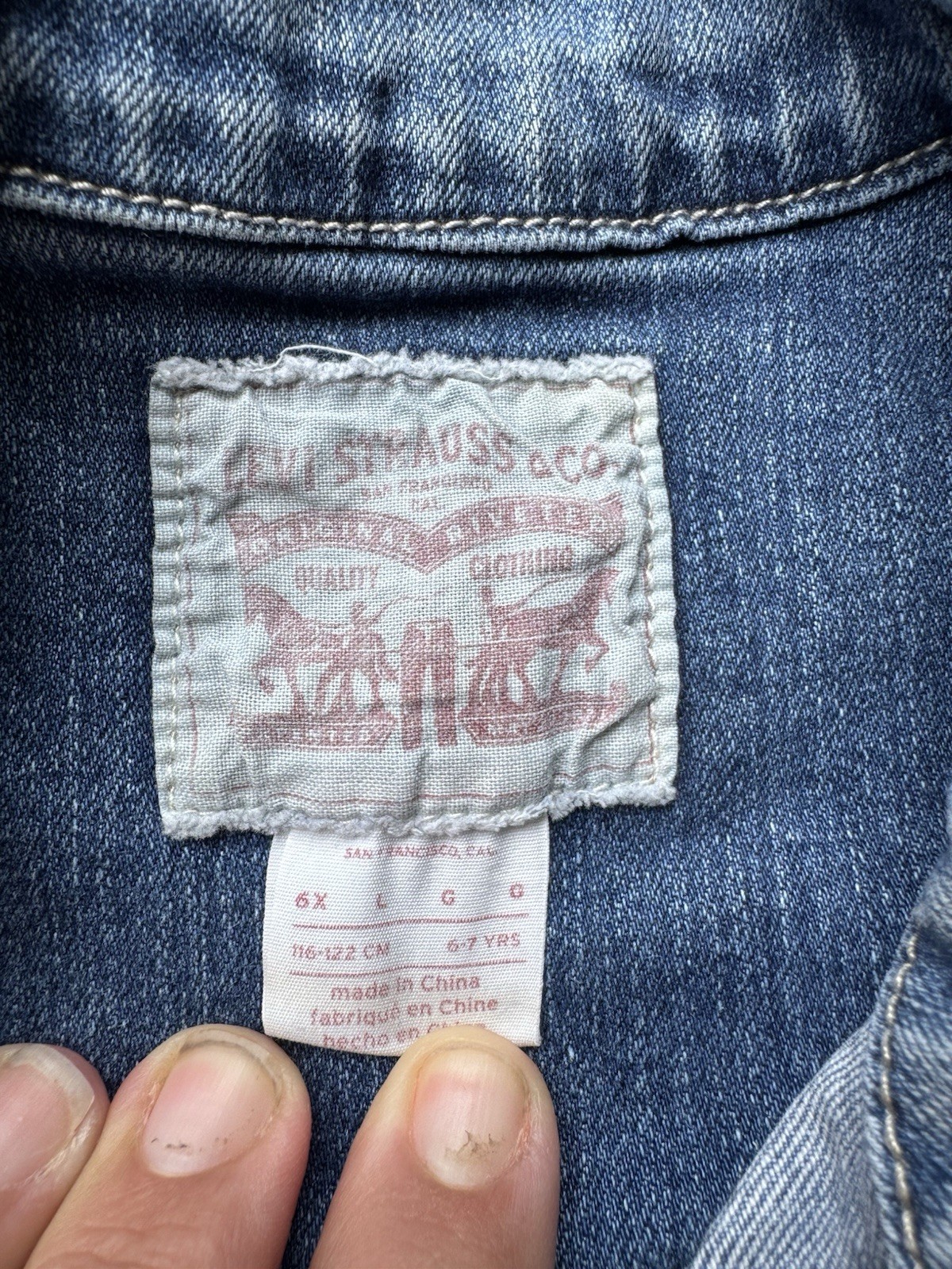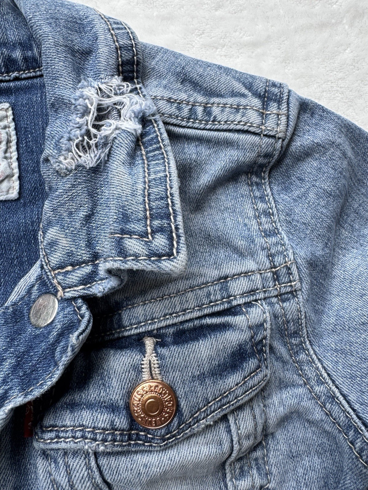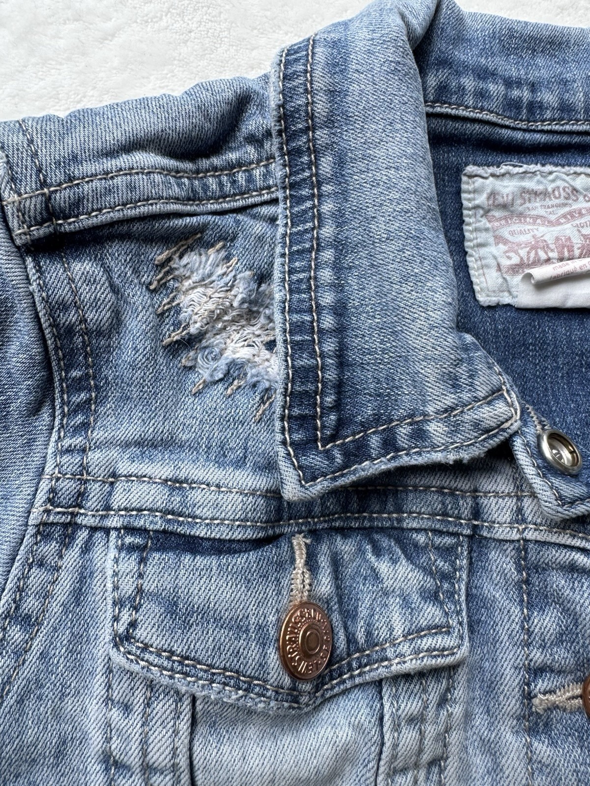 Levi's Kids Denim Jacket Classic Trucker Jean Distress Light Wash Size 6X Unisex