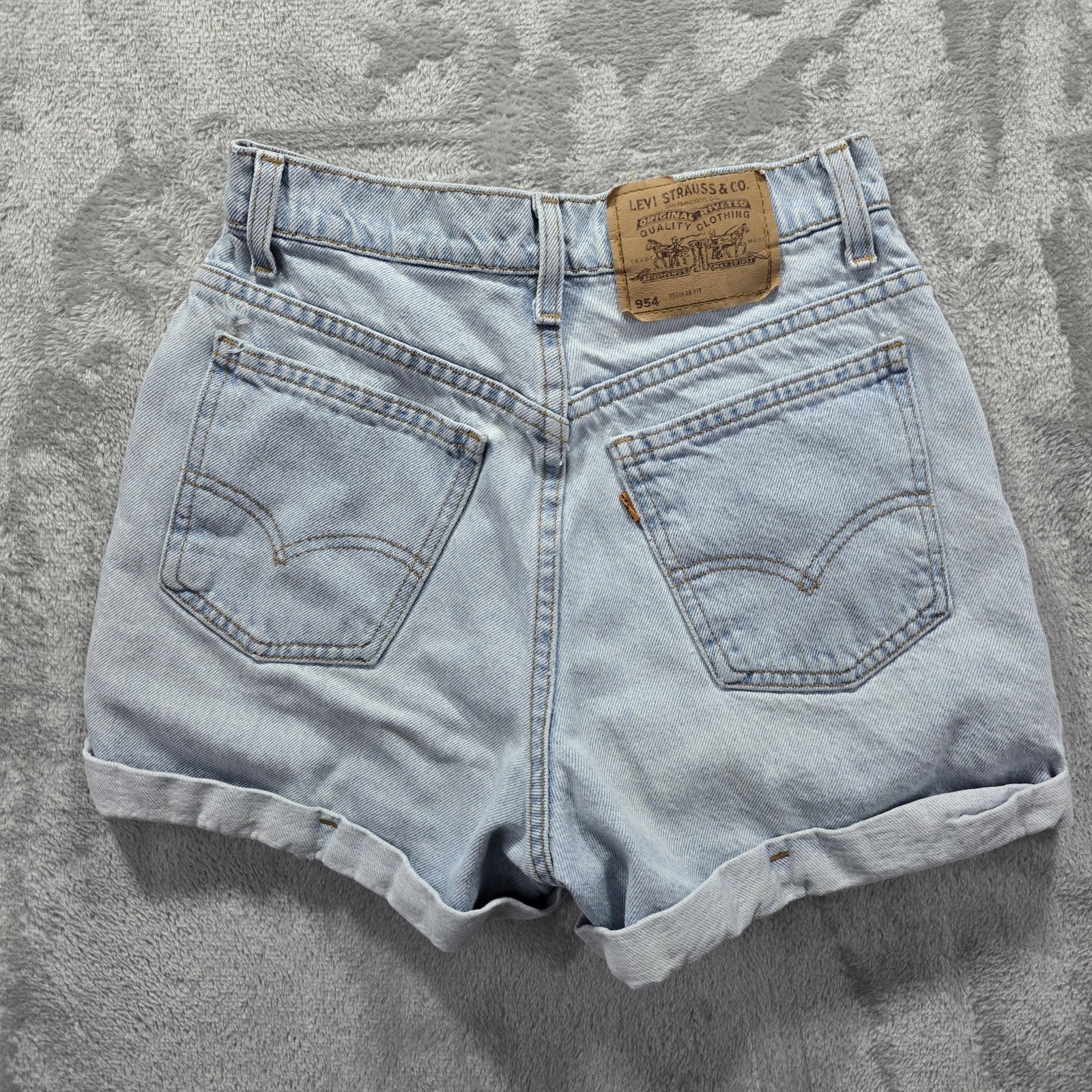 Vintage Levis 954 Shorts Womens 7 Light Wash High Rise Regular Fit Orange Tab