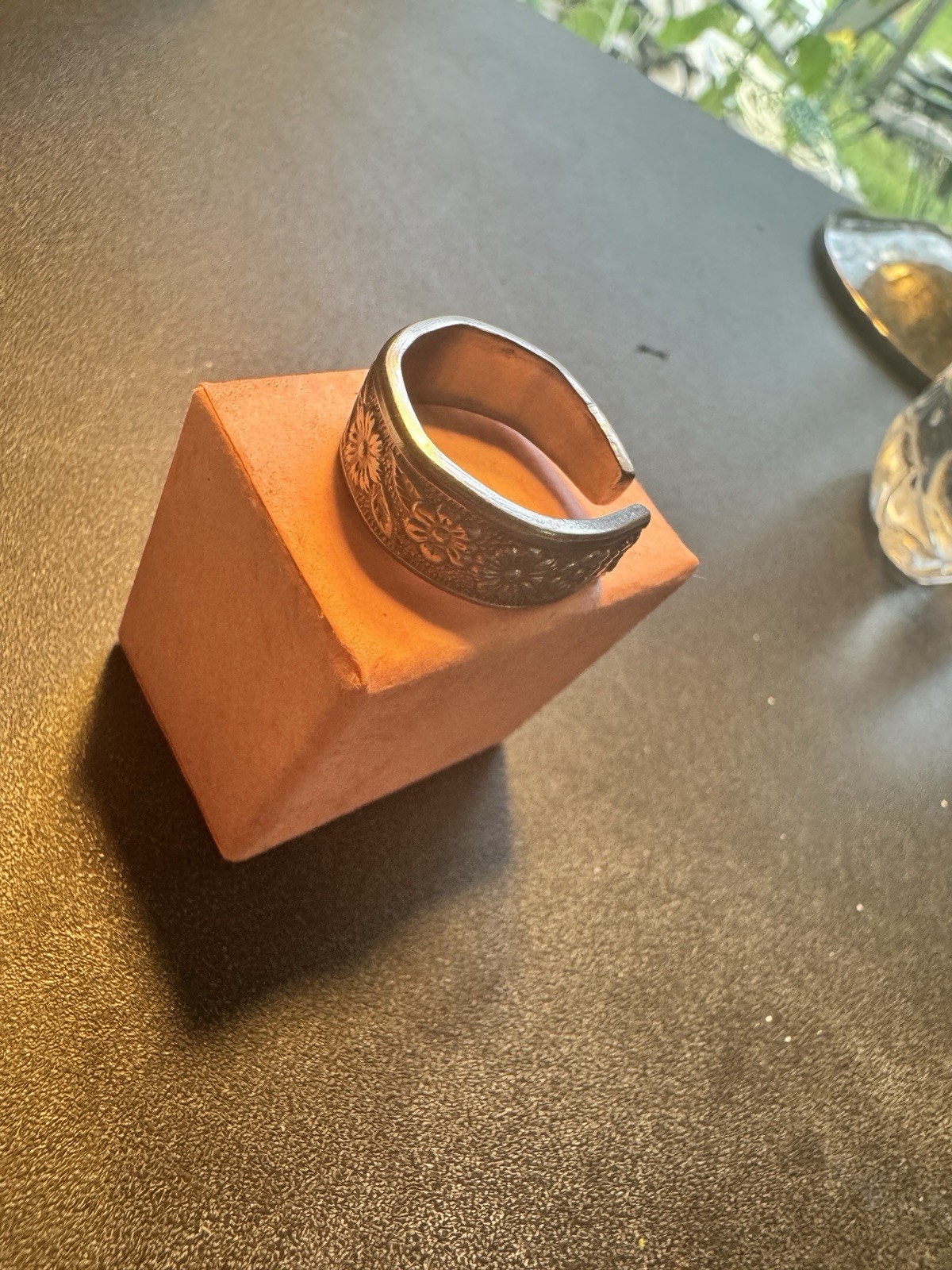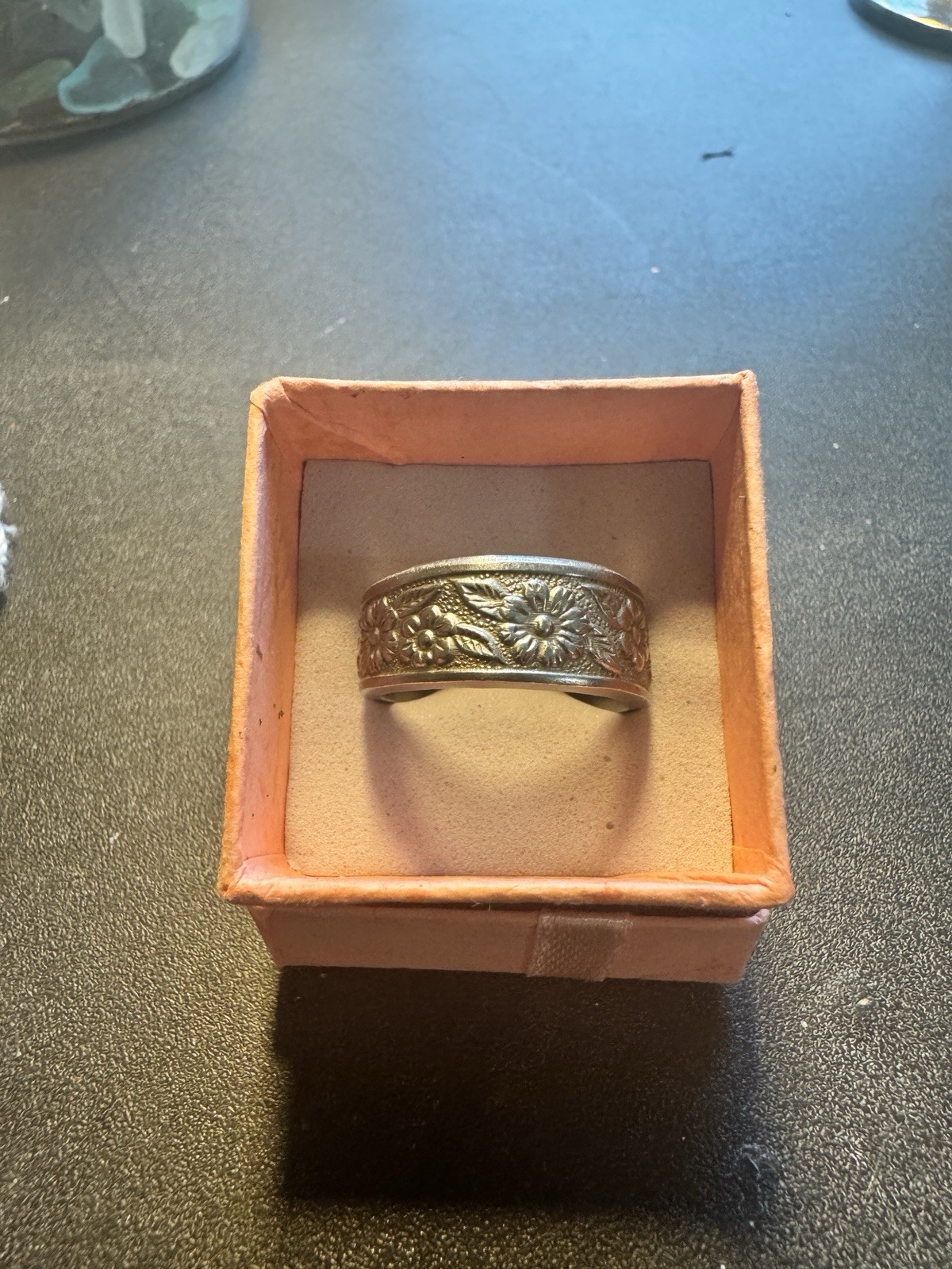 Beautiful Flower Patterned Ring Size 9 Not Fully Closed Band Stainless Steal