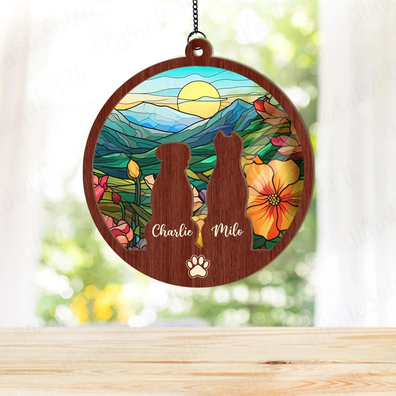 Custom Dog Suncatcher With Name, Personalized Dog Memorial Suncatcher