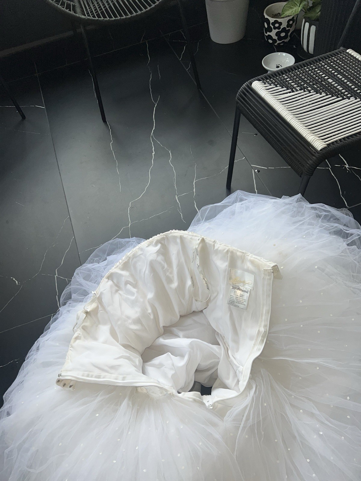 как выглядит Davids Bridal Size 4 Cinderella White Big Ball Gown Dress with Stains фото