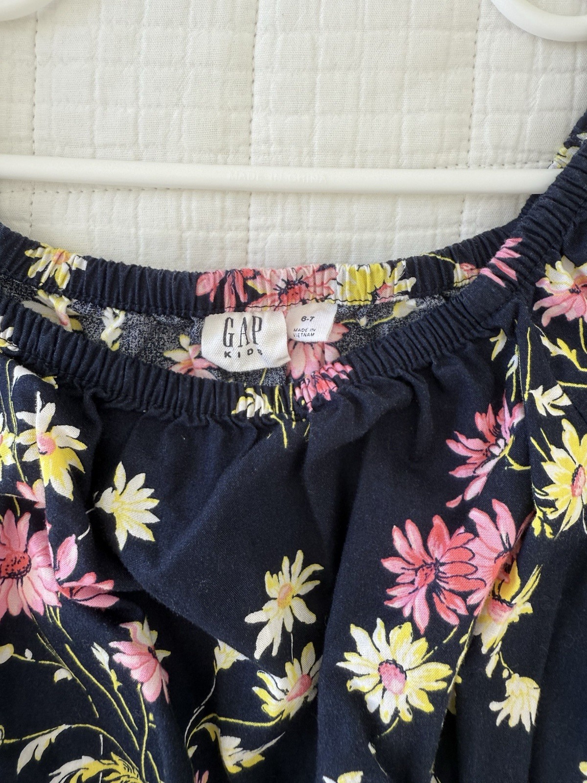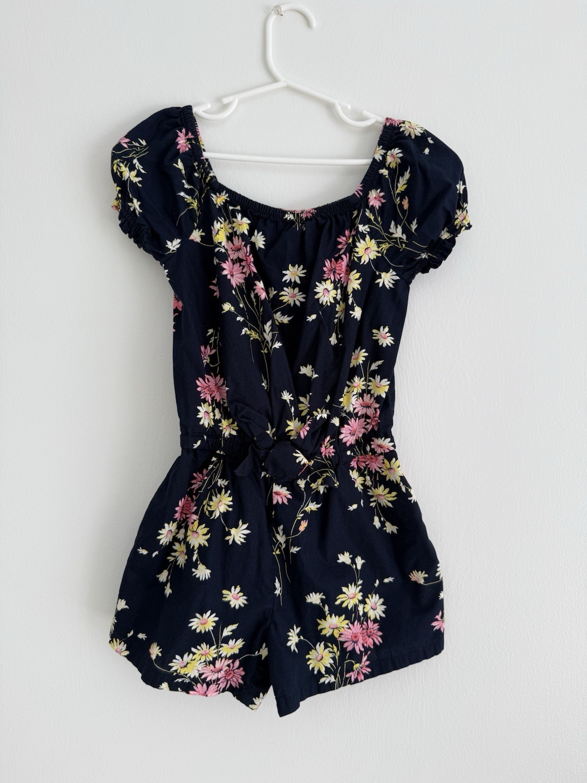 как выглядит Gap Kids Navy Floral Romper Short Sleeve Elastic Waist 100 Cotton size 6-7 фото