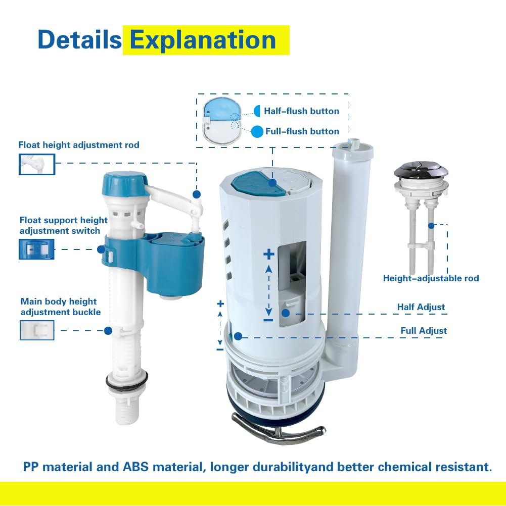 3 Inch Top Dual Flush Valve Repair Kit for One Piece Toilet 10-13 Tank Hei...
