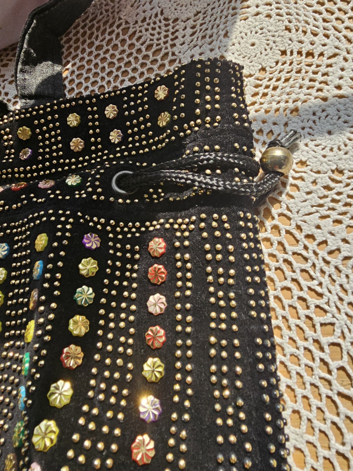Vintage Unbranded Drawstring Beaded Multi-Colored Shoulder Bag