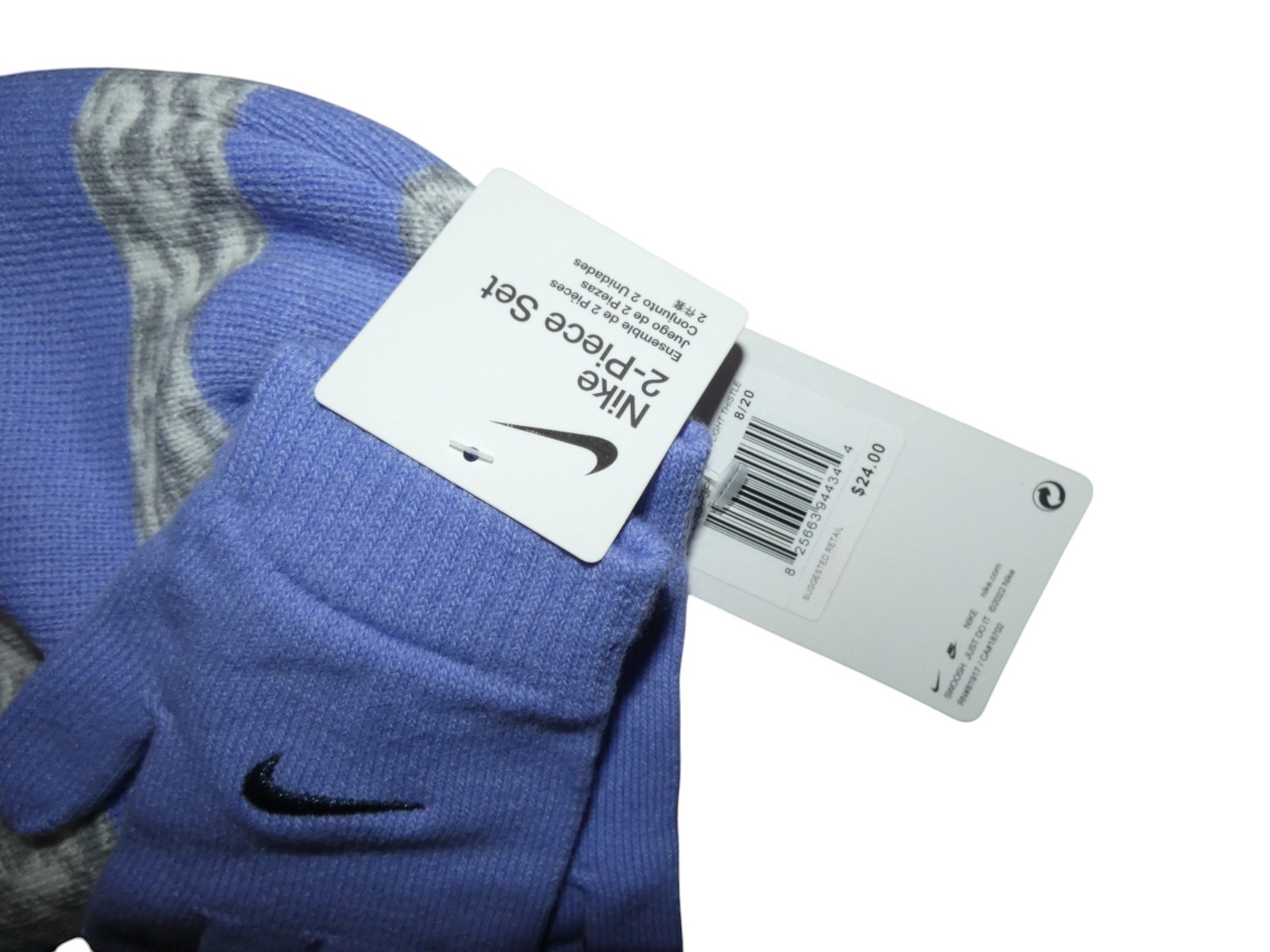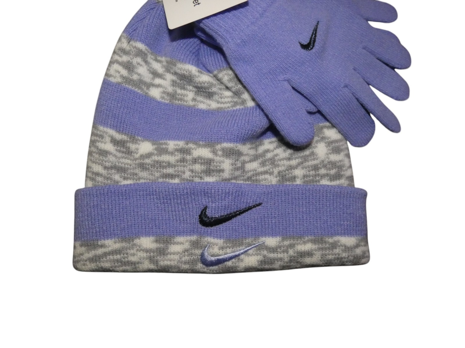 Nike Youth Boys Hat Gloves Set Light Thistle Embroidered Swoosh Logo Kids NWT