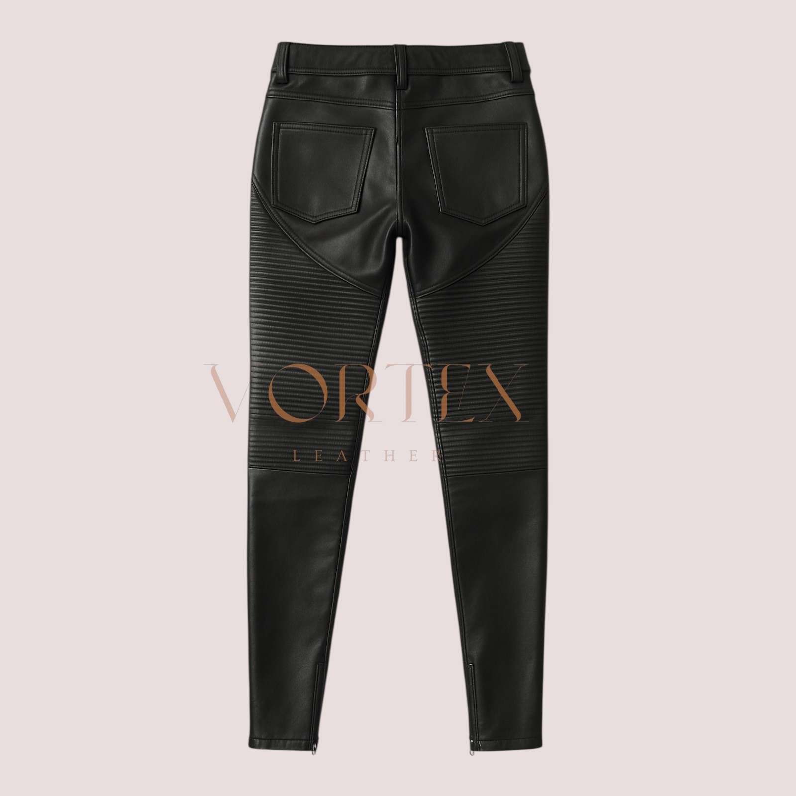 Women Black Biker Leather Pants Slim Fit Moto Style With Zipper Pockets Pants
