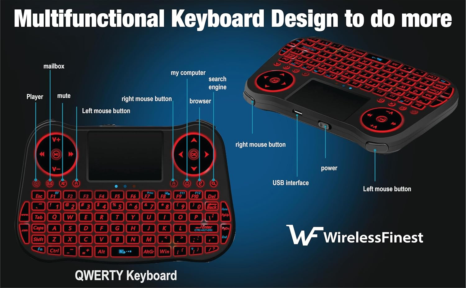 Wireless Mini Keyboard Touchpad Mouse Combo with RGB Backlight Remote Contro
