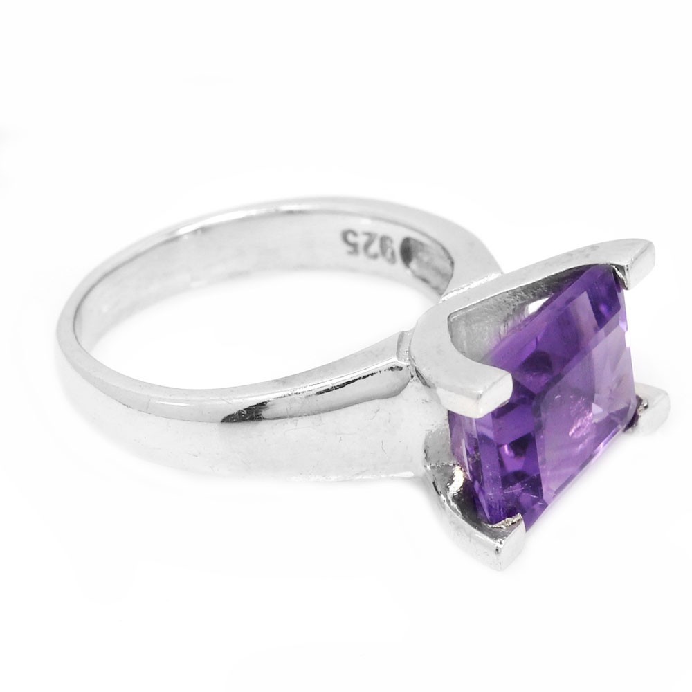 как выглядит 925 STERLING SILVER NATURAL PURPLE AMETHYST OCTAGON CUT GEMSTONE RING SIZE 7.25 фото