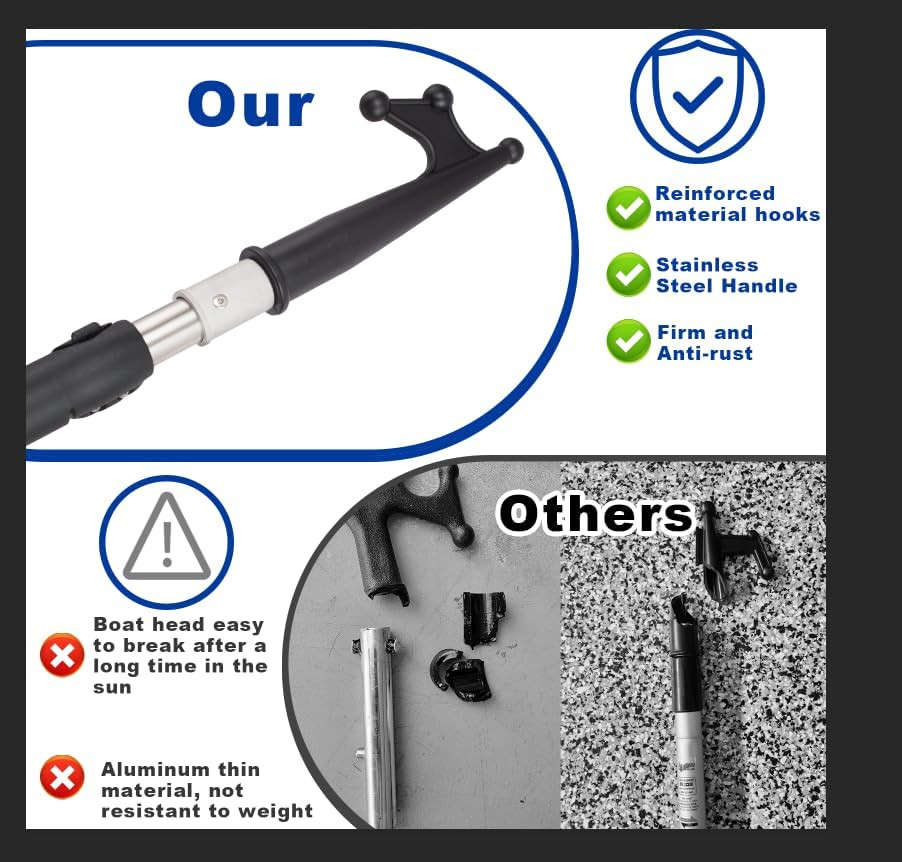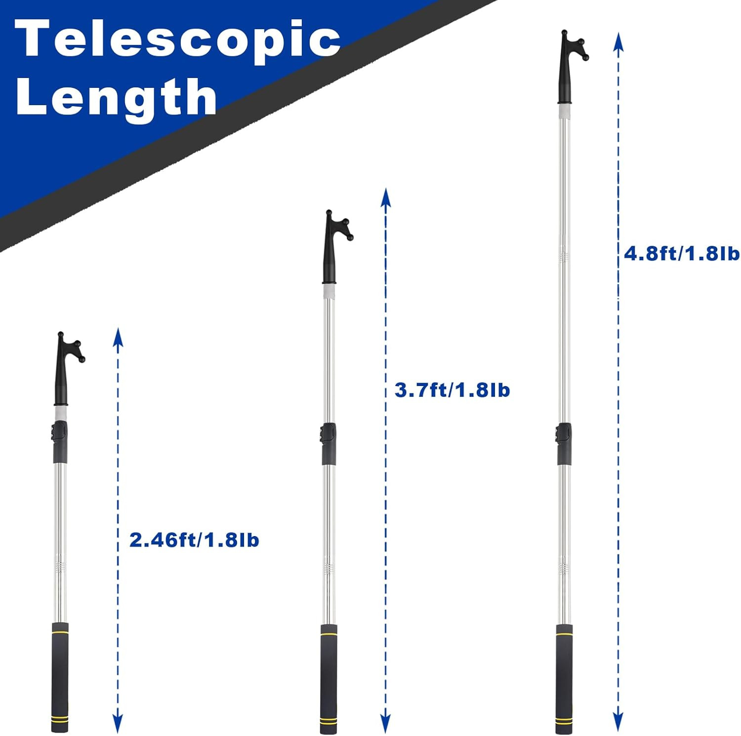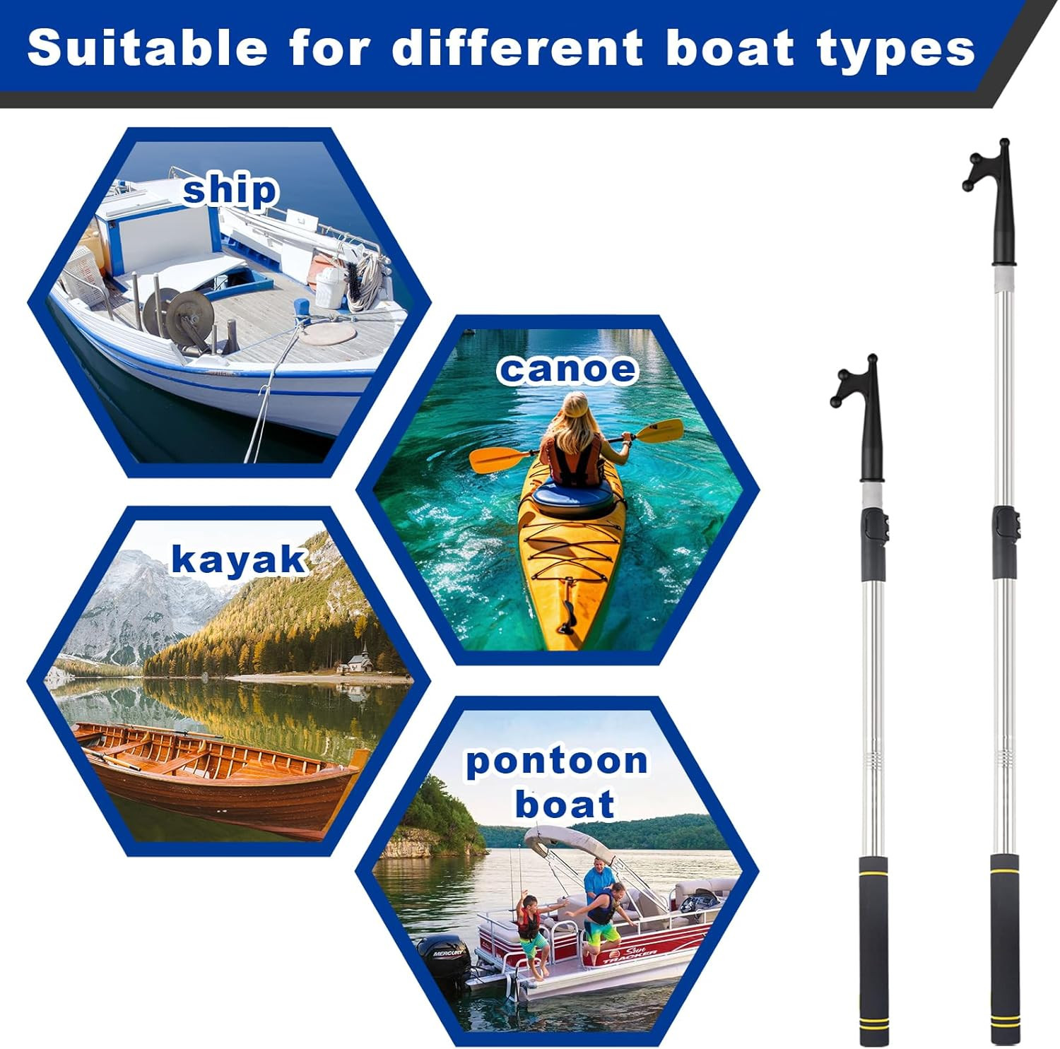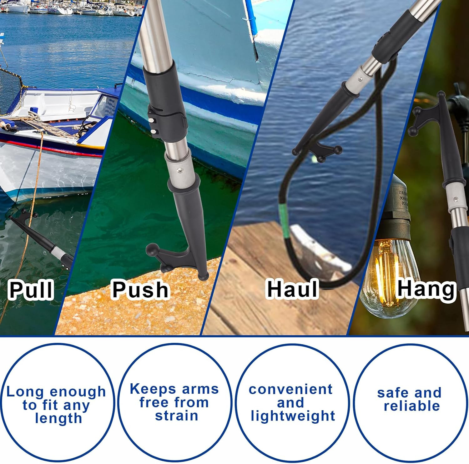 • Telescopic Boat Hook Stainless Steel Adjustable Docking Pole with Non-Slip Spo
