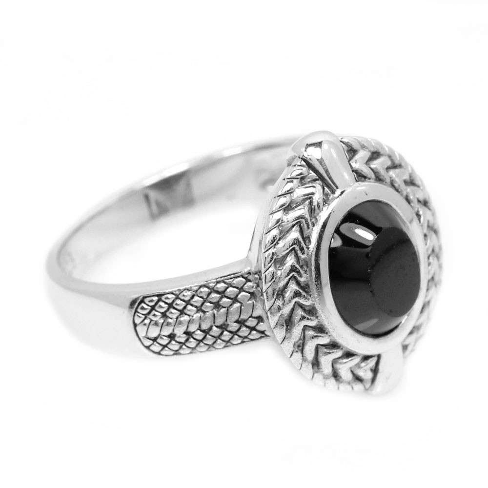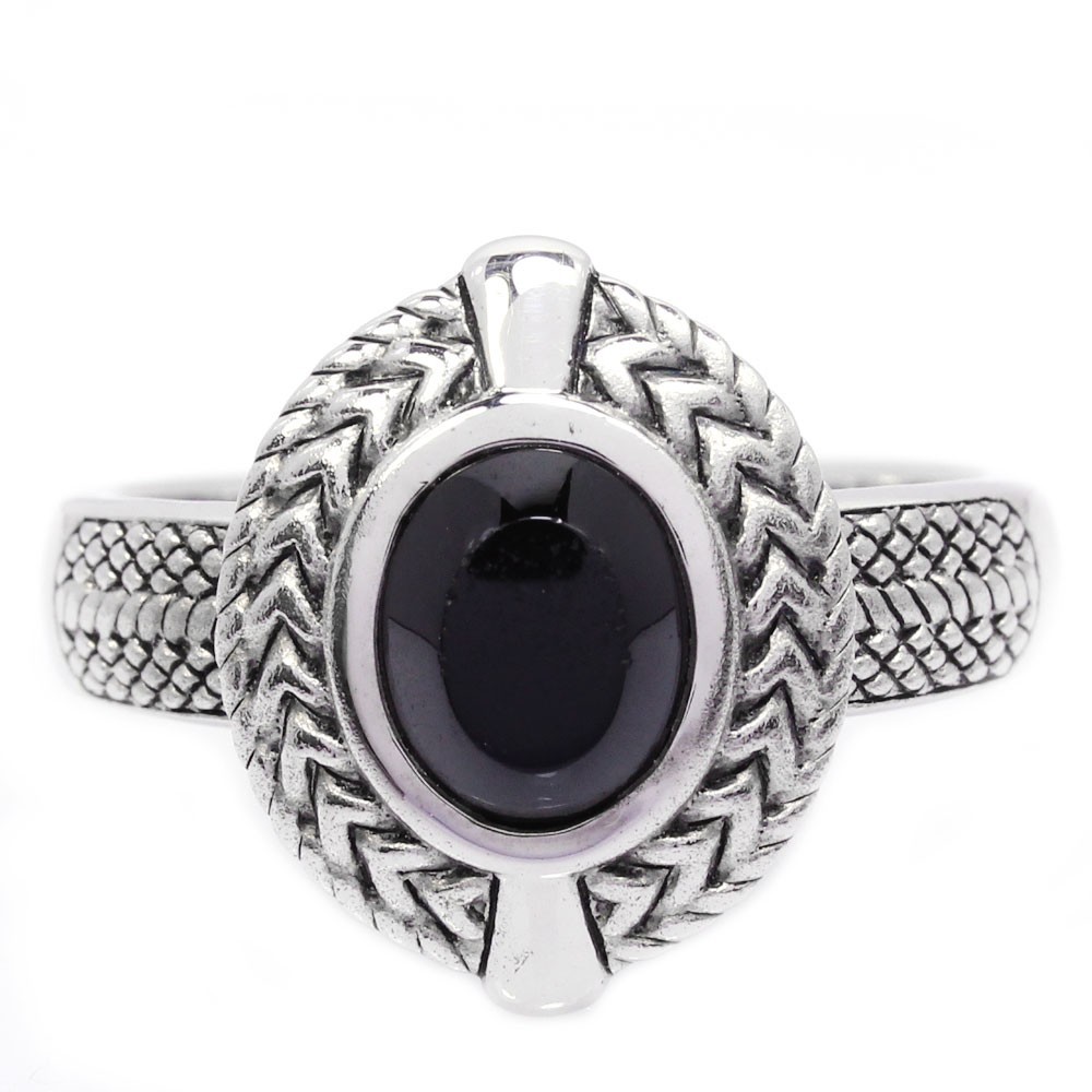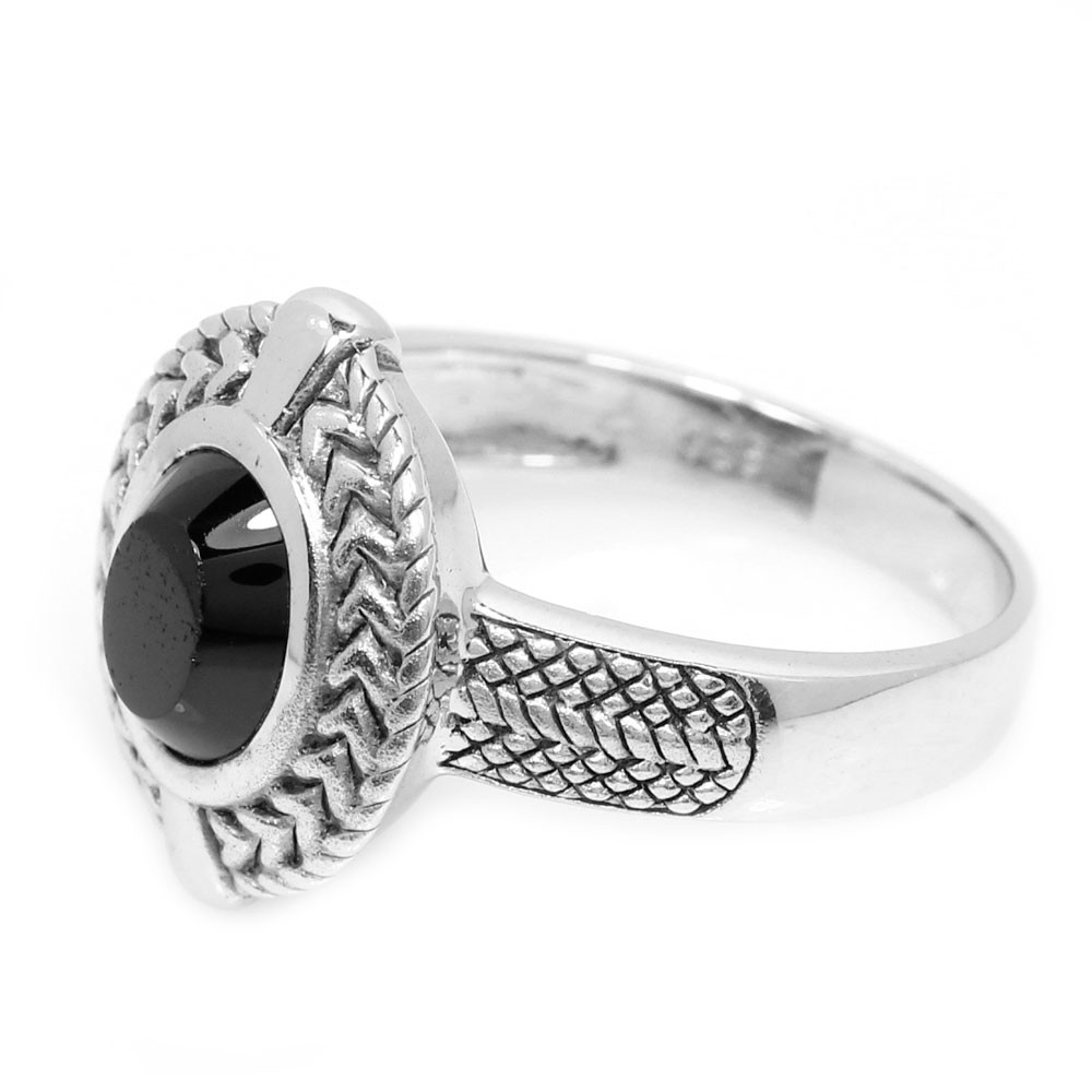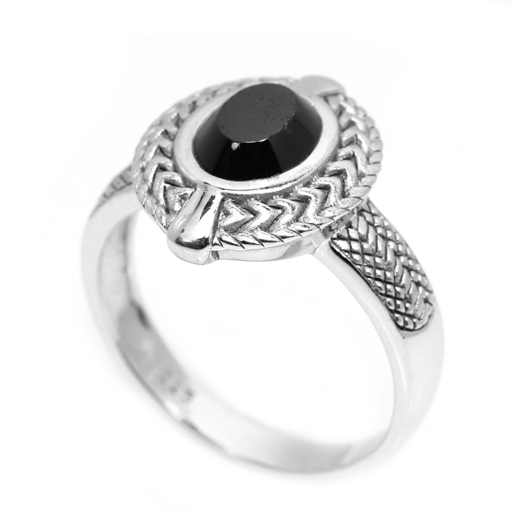 как выглядит 925 STERLING SILVER RING NATURAL BLACK ONYX OVAL CABOCHON GEMSTONE RING SIZE 9 фото