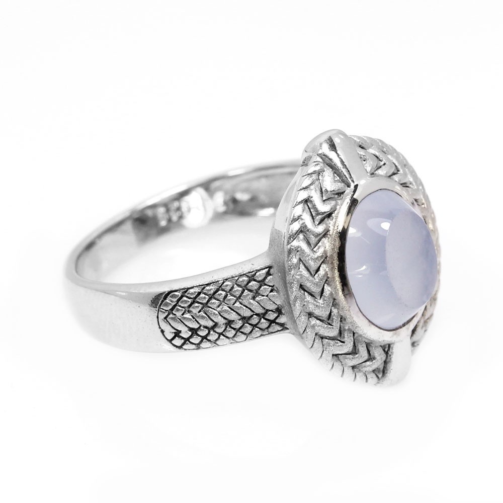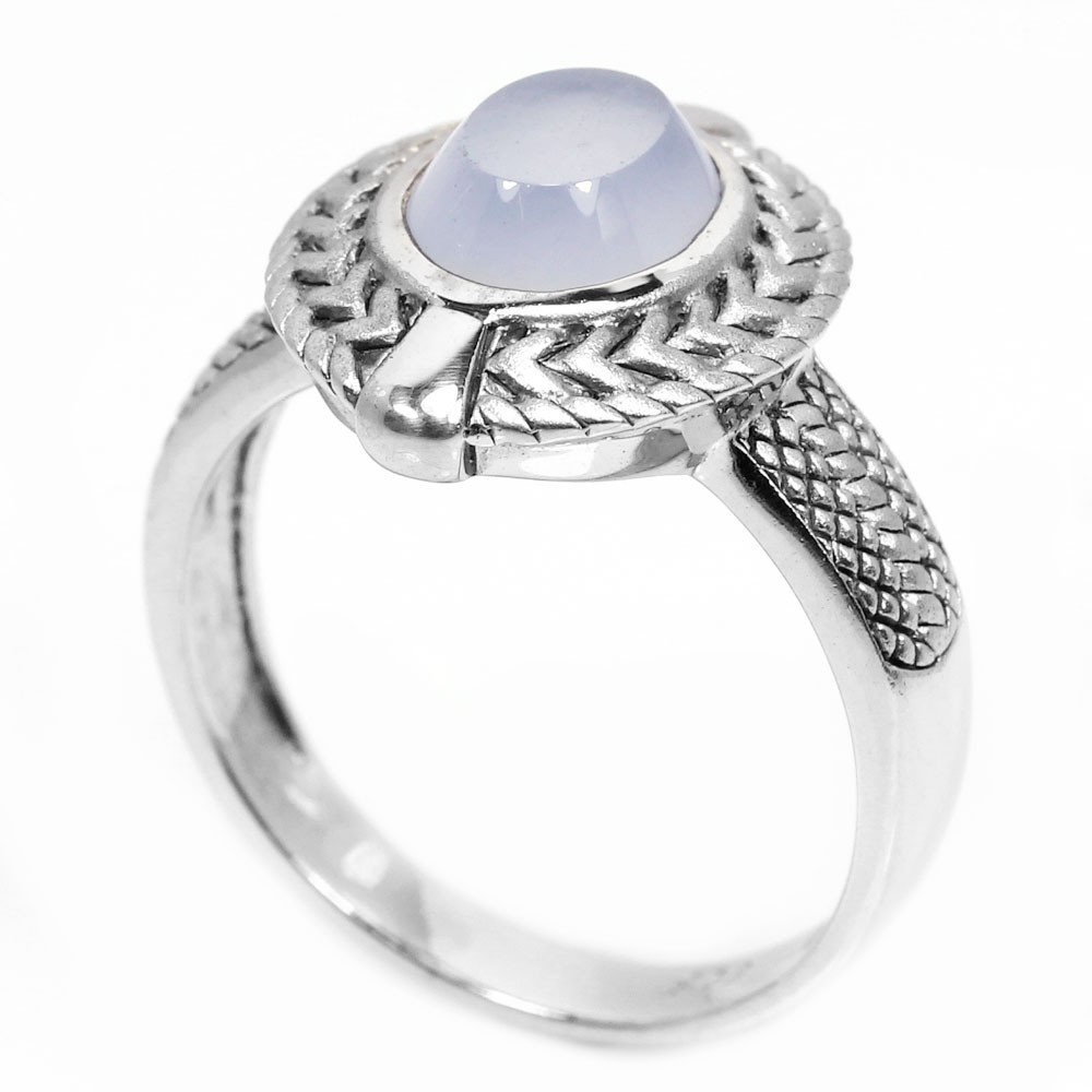 как выглядит 925 STERLING SILVER RING NATURAL BLUE CHALCEDONY CABOCHON GEMSTONE RING SIZE 8 фото