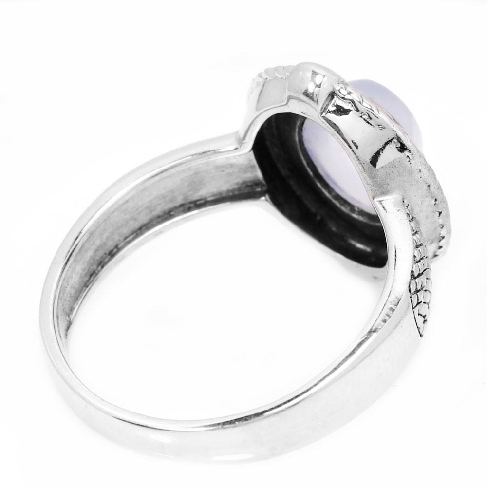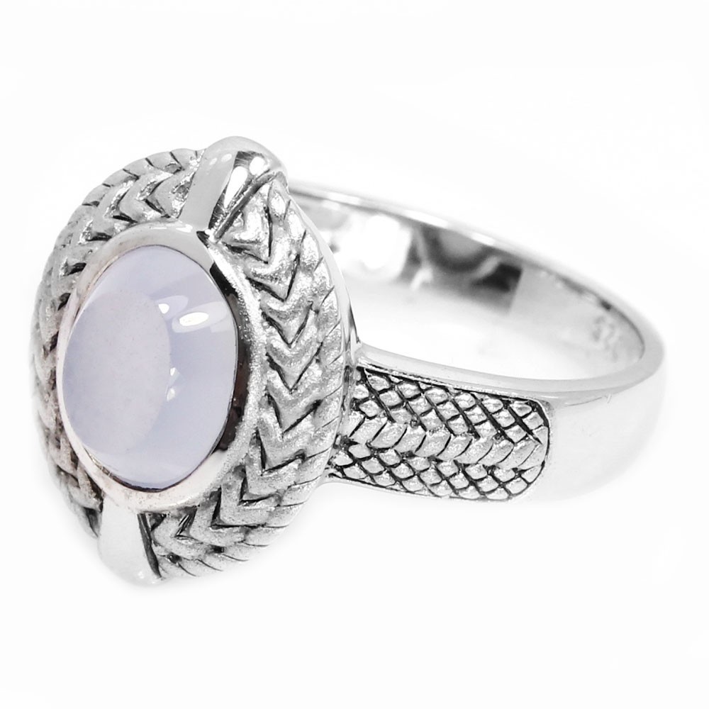 925 STERLING SILVER RING NATURAL BLUE CHALCEDONY CABOCHON GEMSTONE RING SIZE 8