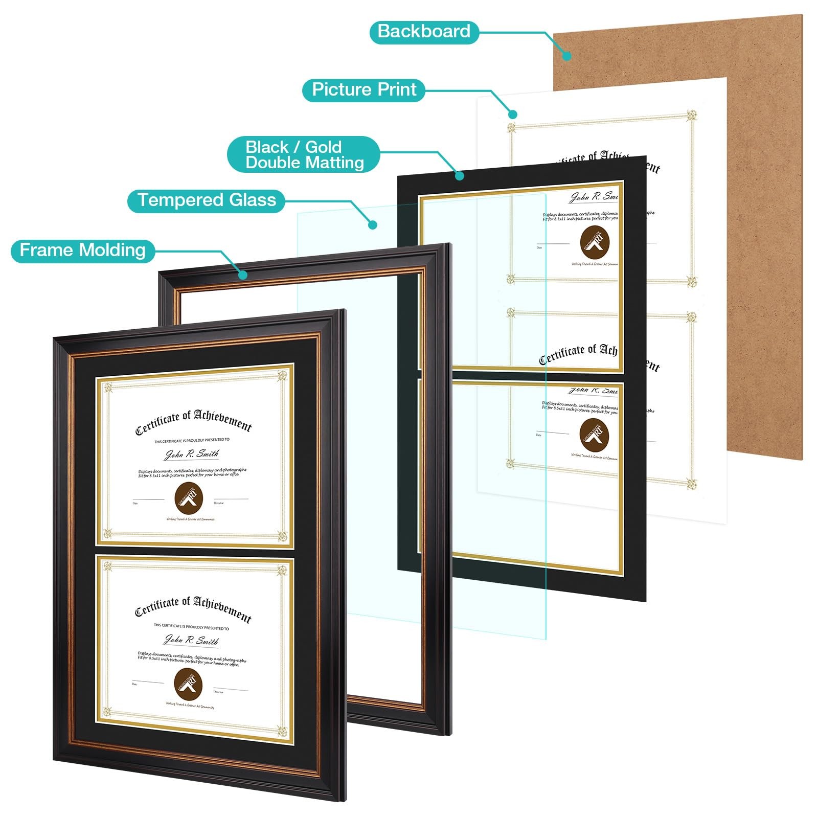Double 8.5x11 Diploma Frame, Black over Gold Double Mat or 14x20 without Mat ...