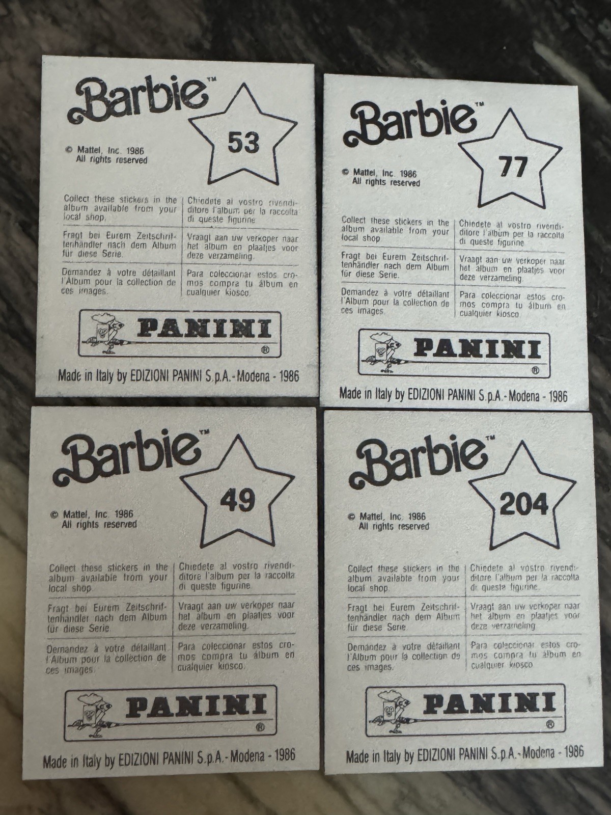 • SET OF 4 Vintage 1986 PANINI BARBIE ALBUM STICKER Mattel 49 53 77 204