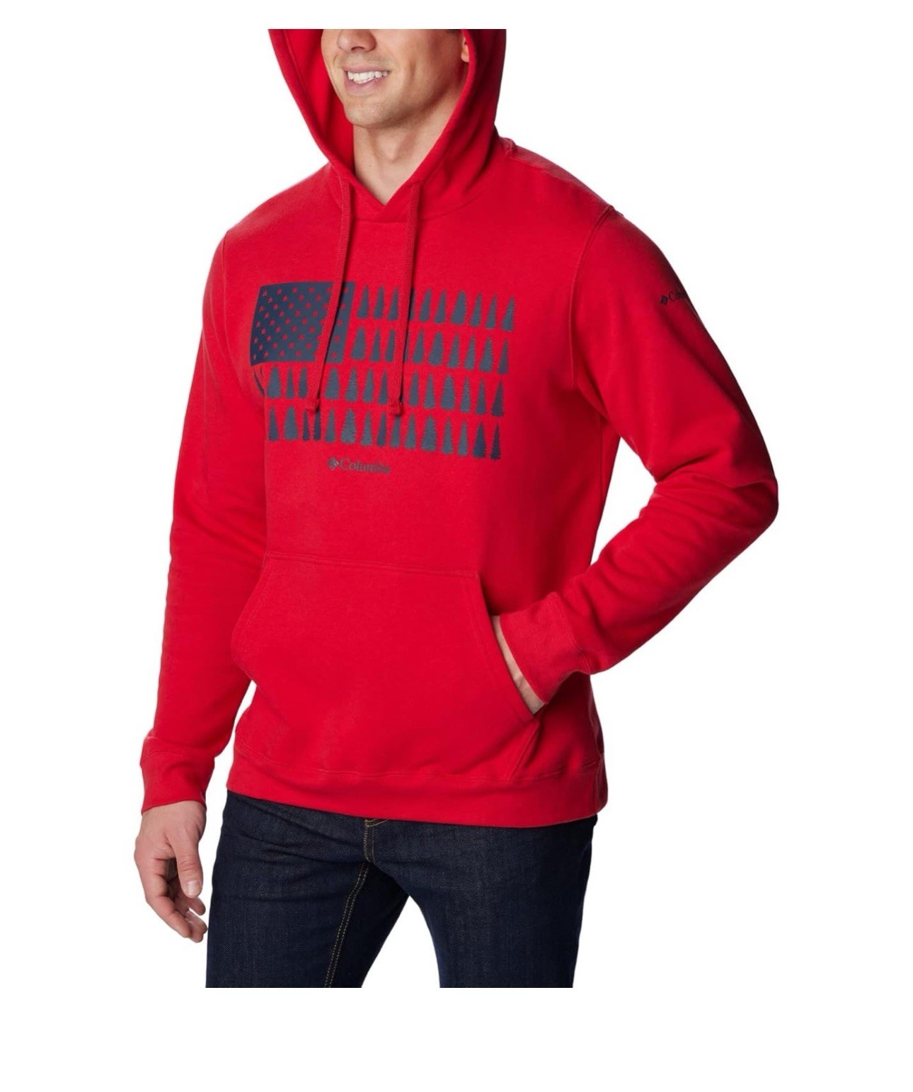 Columbia Men's Trek Graphic Hoodie, Mountain Red/Treestriped Flag Size L