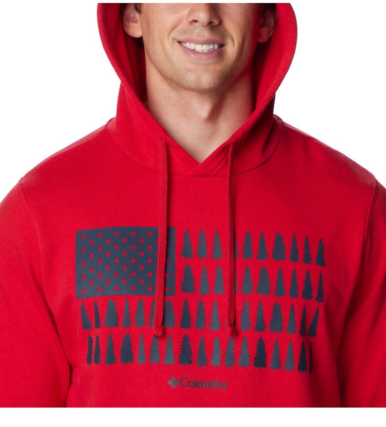 как выглядит Columbia Mens Trek Graphic Hoodie, Mountain Red/Treestriped Flag Size L фото