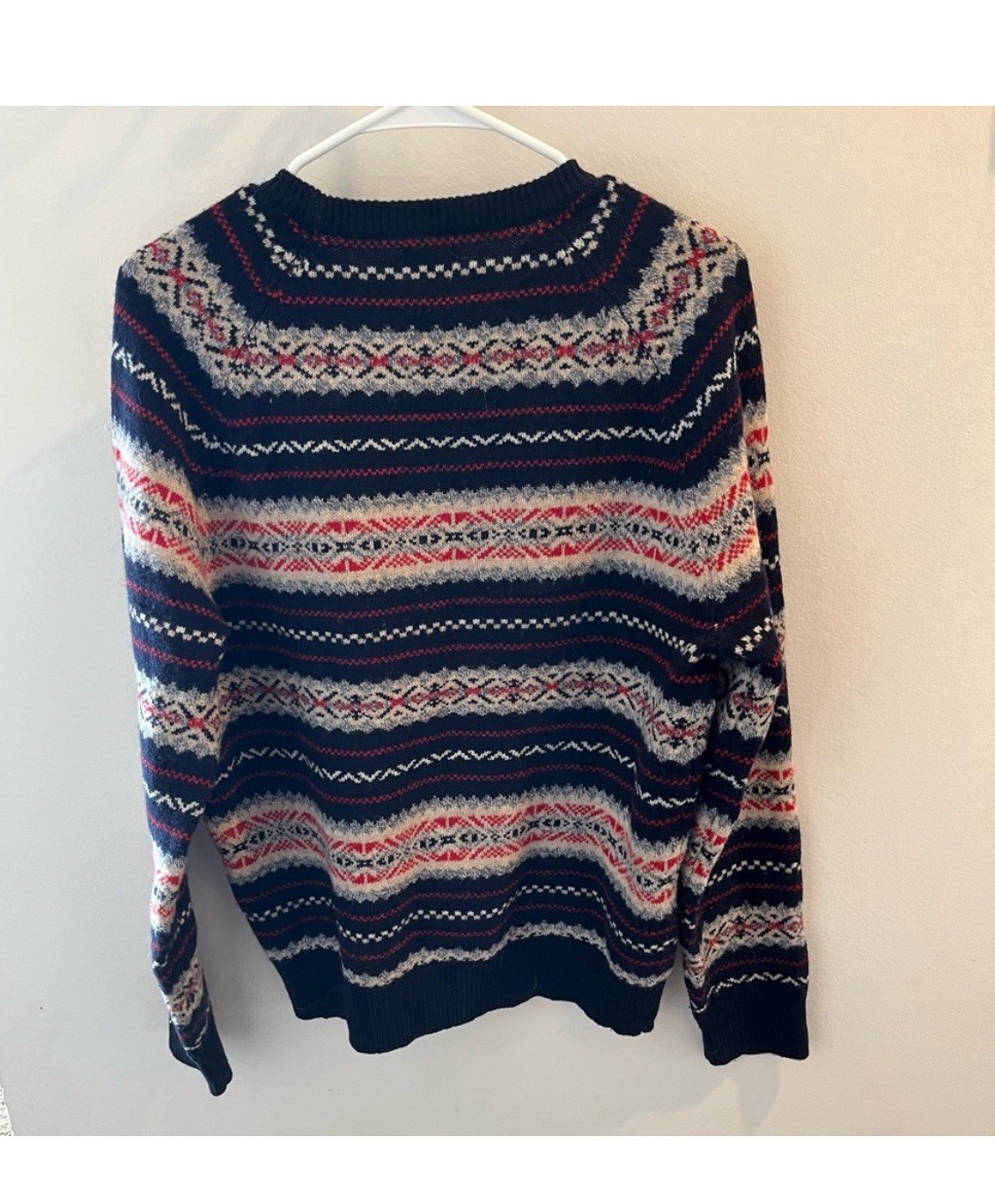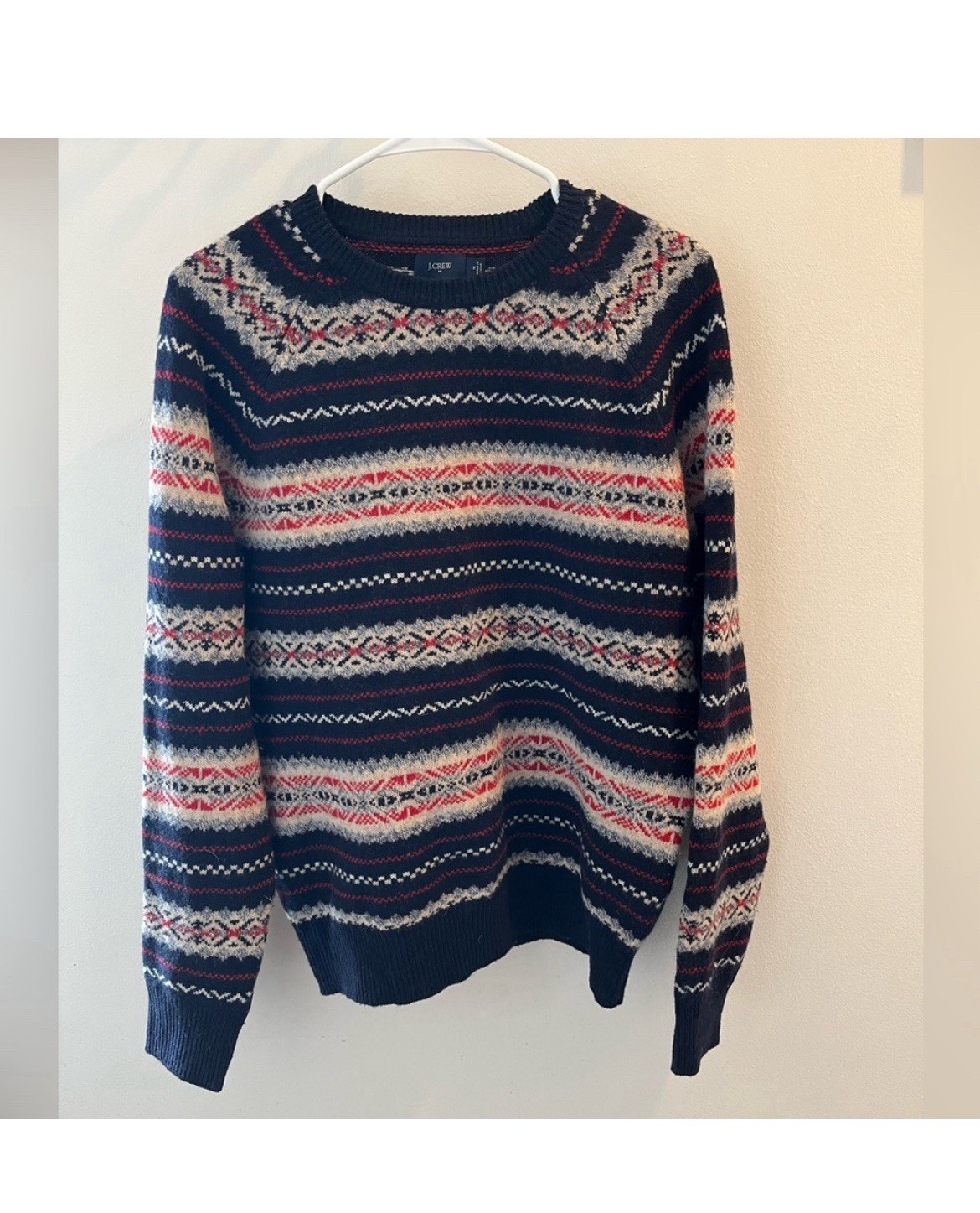 Men s J. Crew 100 lambswool fair isle sweater size medium blue red
