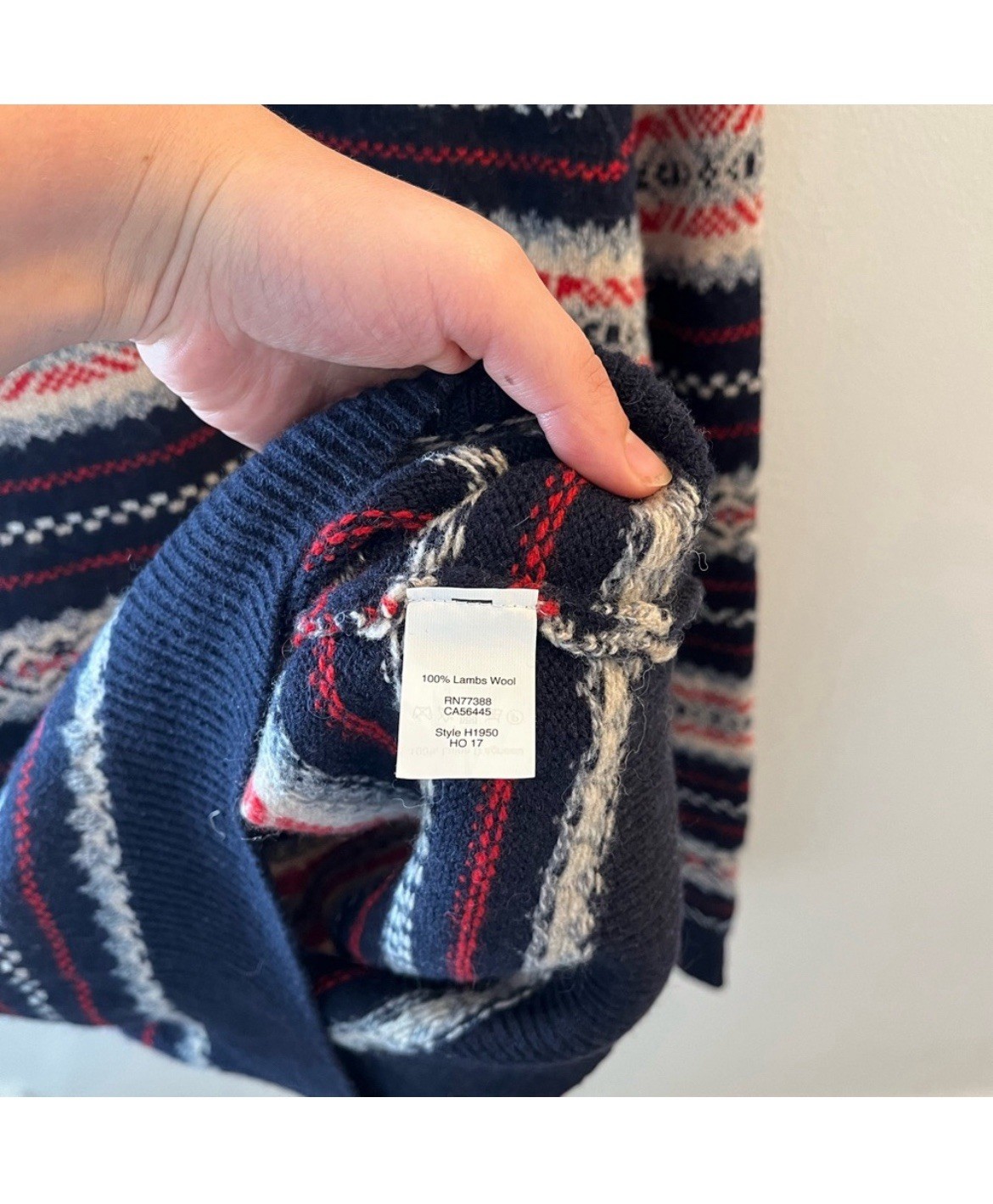 как выглядит Men s J. Crew 100 lambswool fair isle sweater size medium blue red фото