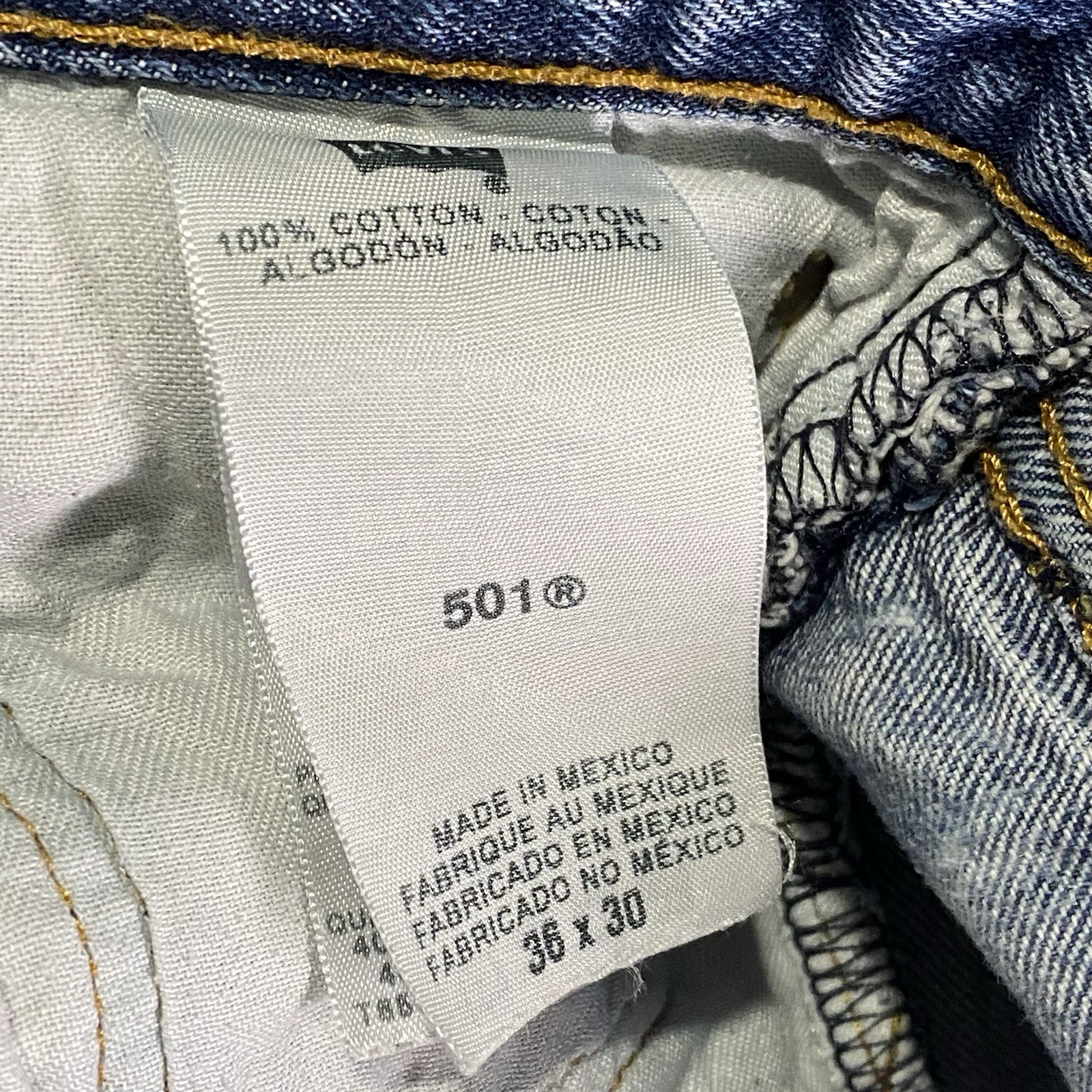 Vintage Levi s 501 Jeans 36x30 Whiskering Fading Faded Denim Distressed 2012