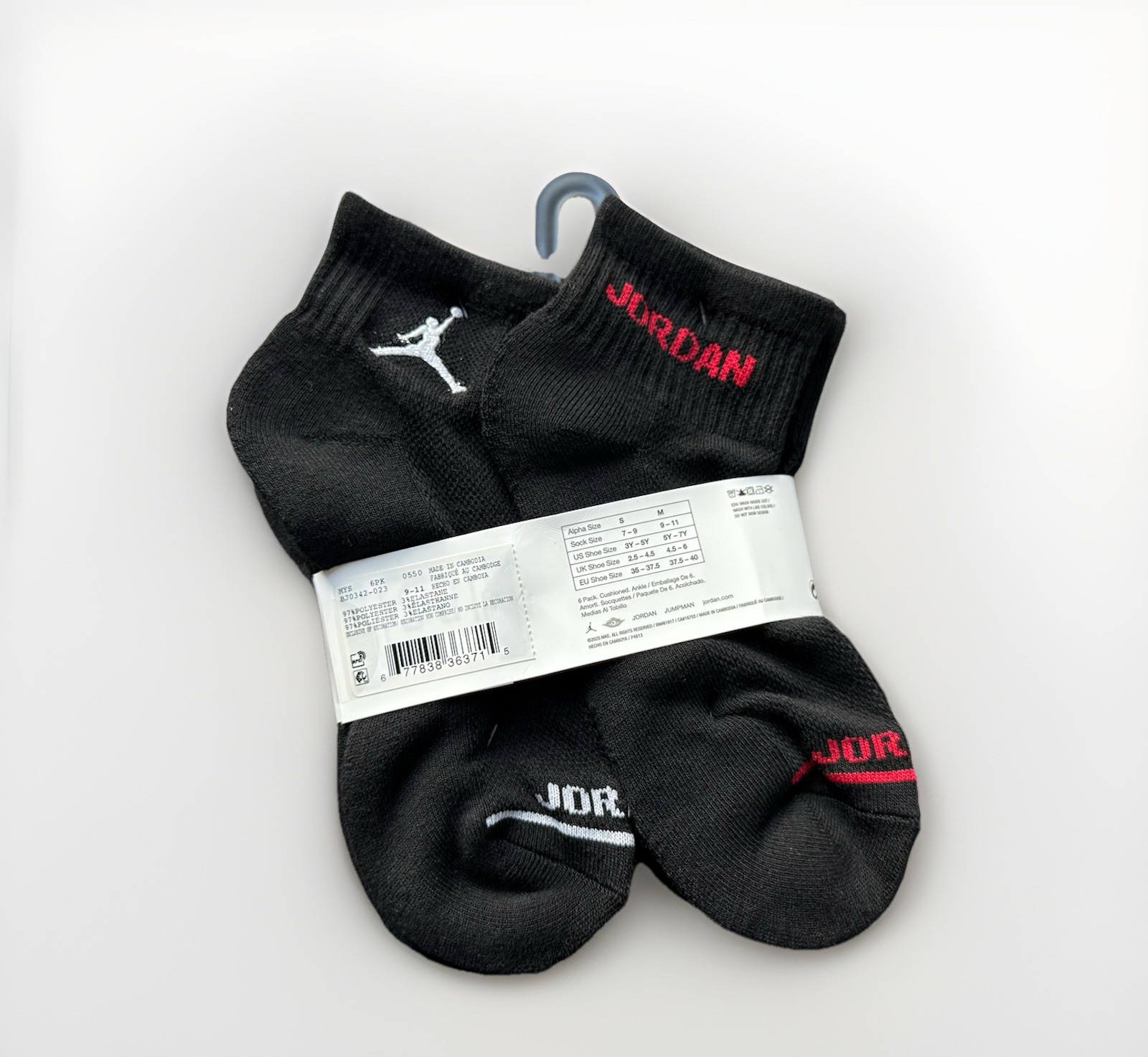 Nike Jordan Big Kids Legend Ankle Socks 6 Pairs BJ0342-023 Size 5Y-7Y