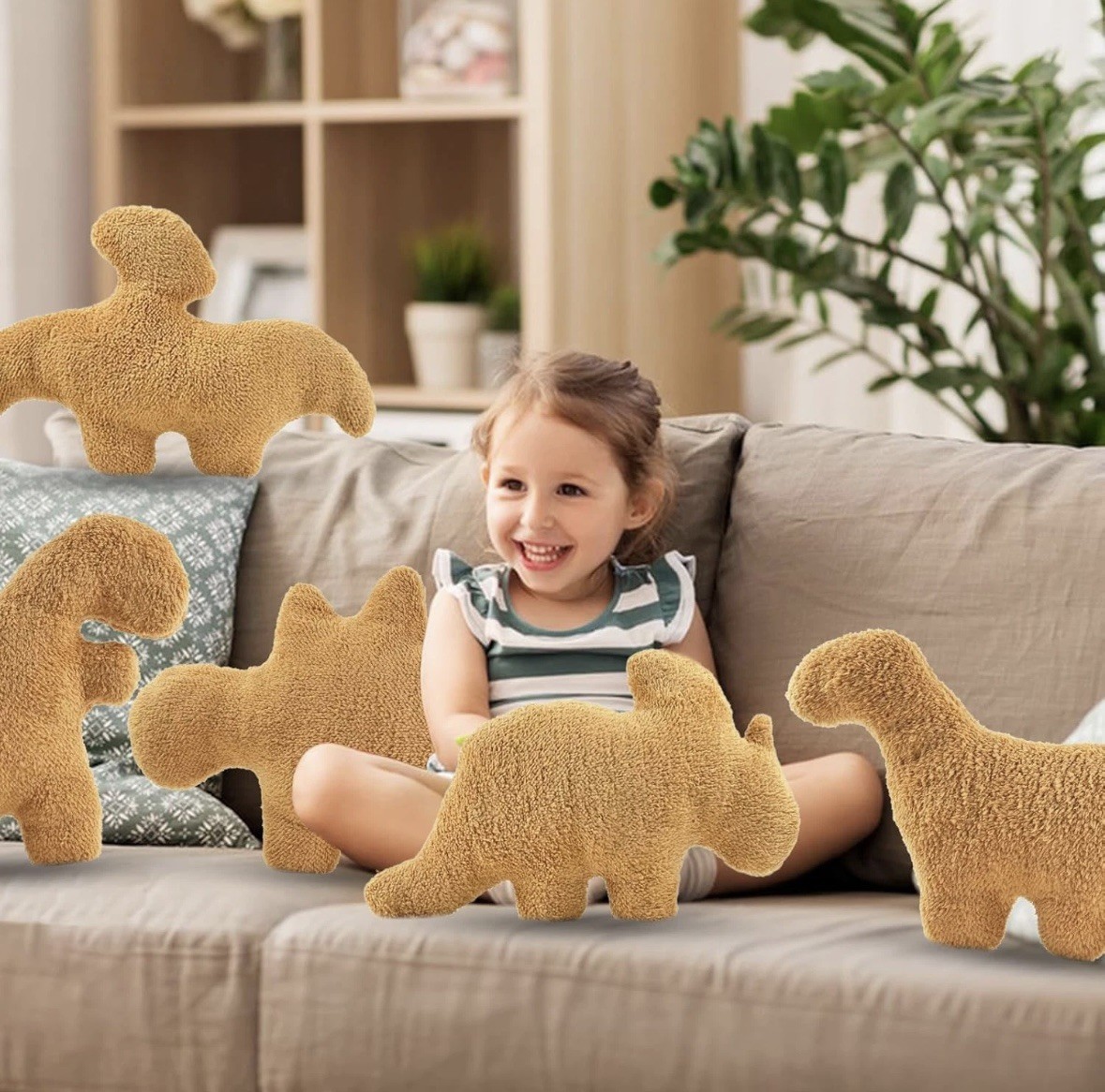 как выглядит 3 Packs Dino Nugget Pillow Set, Funny Chicken Nugget Plushie Birthday Gift, Dino фото