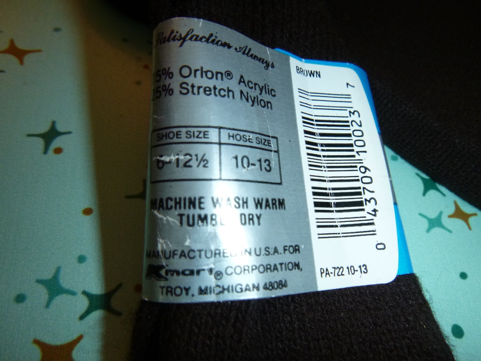NOS Vtg KMart Super Value Orlon Socks Brown USA DEADSTOCK