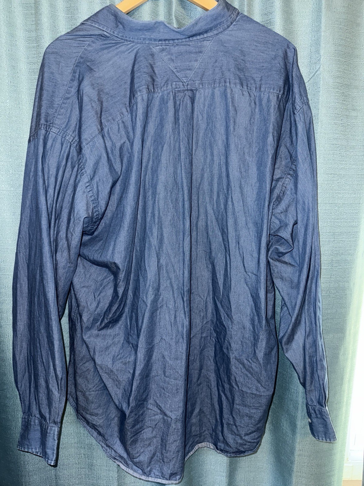 как выглядит Tommy Hilfiger Mens Cotton Long Sleeve Button Up Blue Denim Shirt Sz 17 34-35 фото